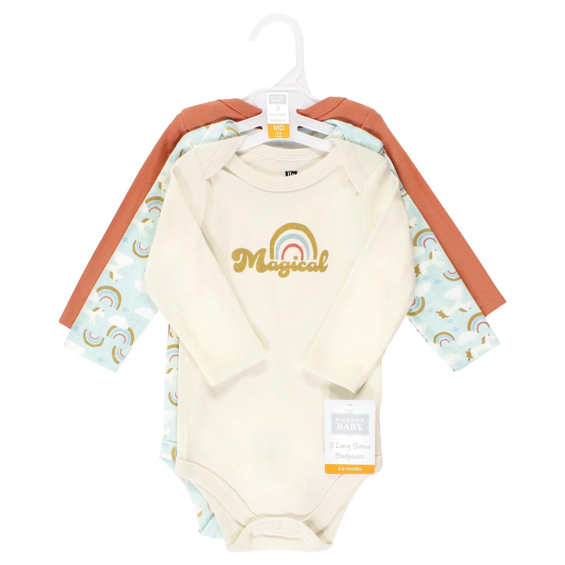 - Q: How many bodysuits are included in the Hudson Baby 3-pack? A: The Hudson Baby 3-pack includes three coordinating long-sleeve bodysuits.