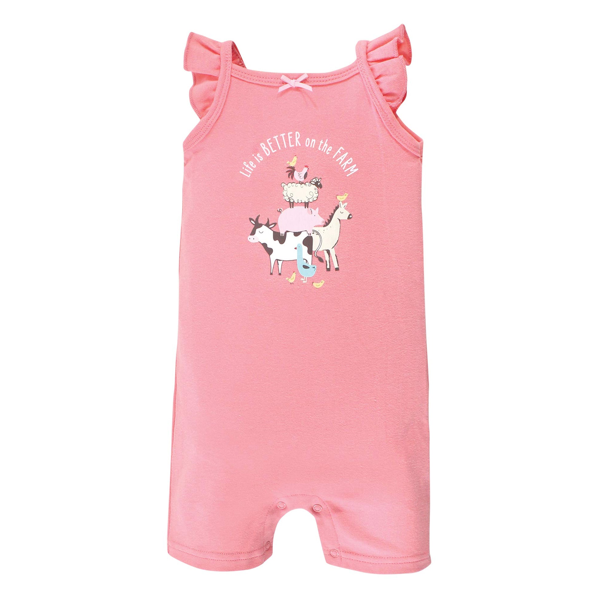 - Q: Do the rompers feature any designs or patterns? A: Yes, the rompers feature adorable farm animal designs, making them visually appealing for both boys and girls.
