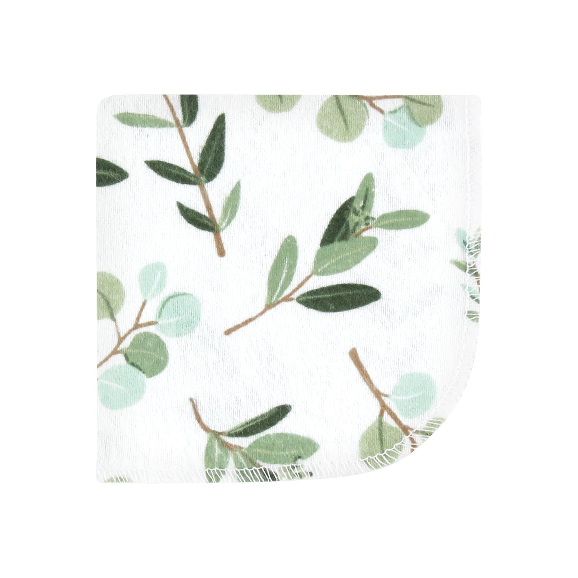 - Q: What colors are available in the Hudson Baby washcloths? A: The washcloths in this set feature an attractive eucalyptus design, perfect for any baby.