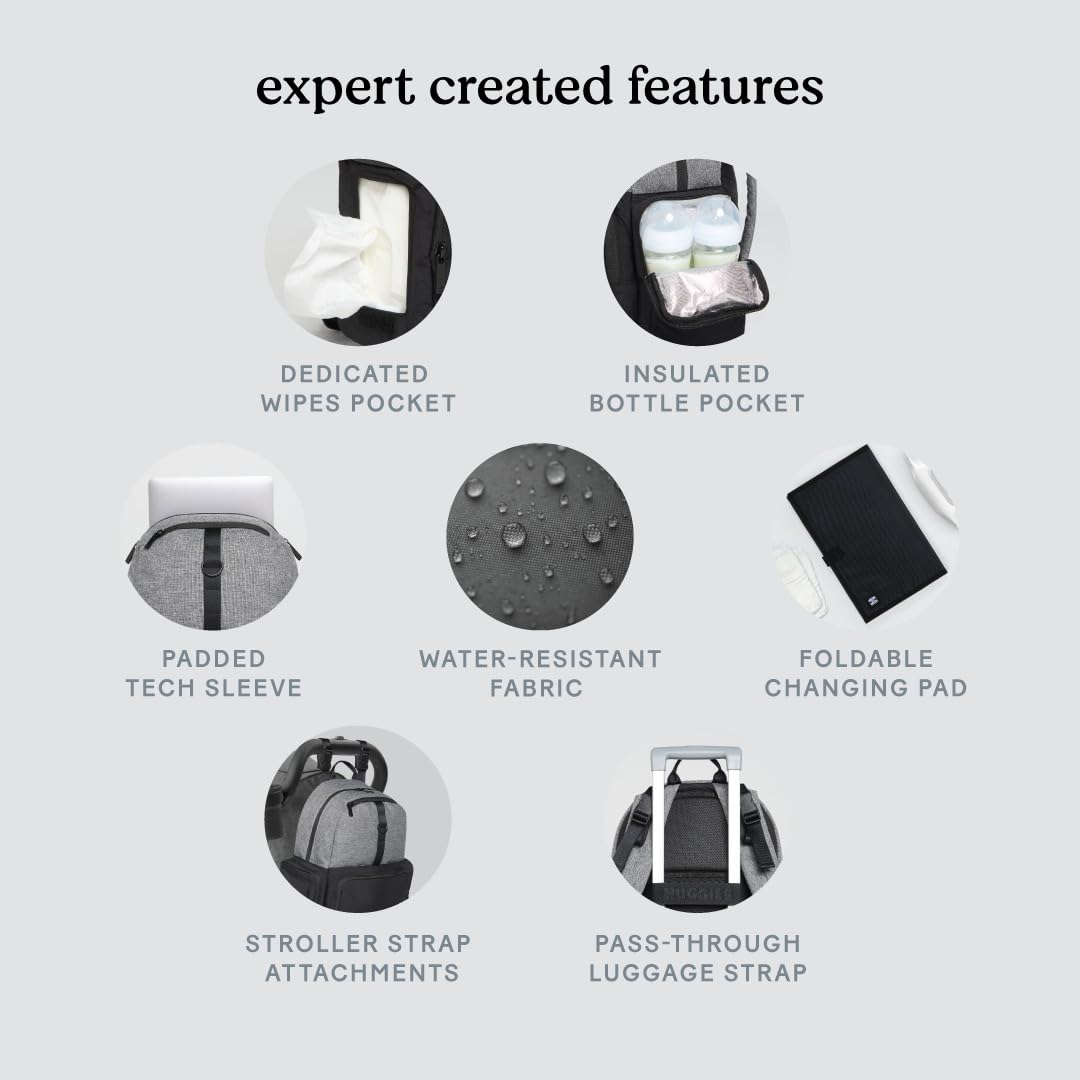- Q: Can I fit a water bottle in the Huggies Day Pack? A: Yes, the backpack features an insulated pocket that can accommodate a water bottle or milk container, helping to keep liquids at the right temperature.
