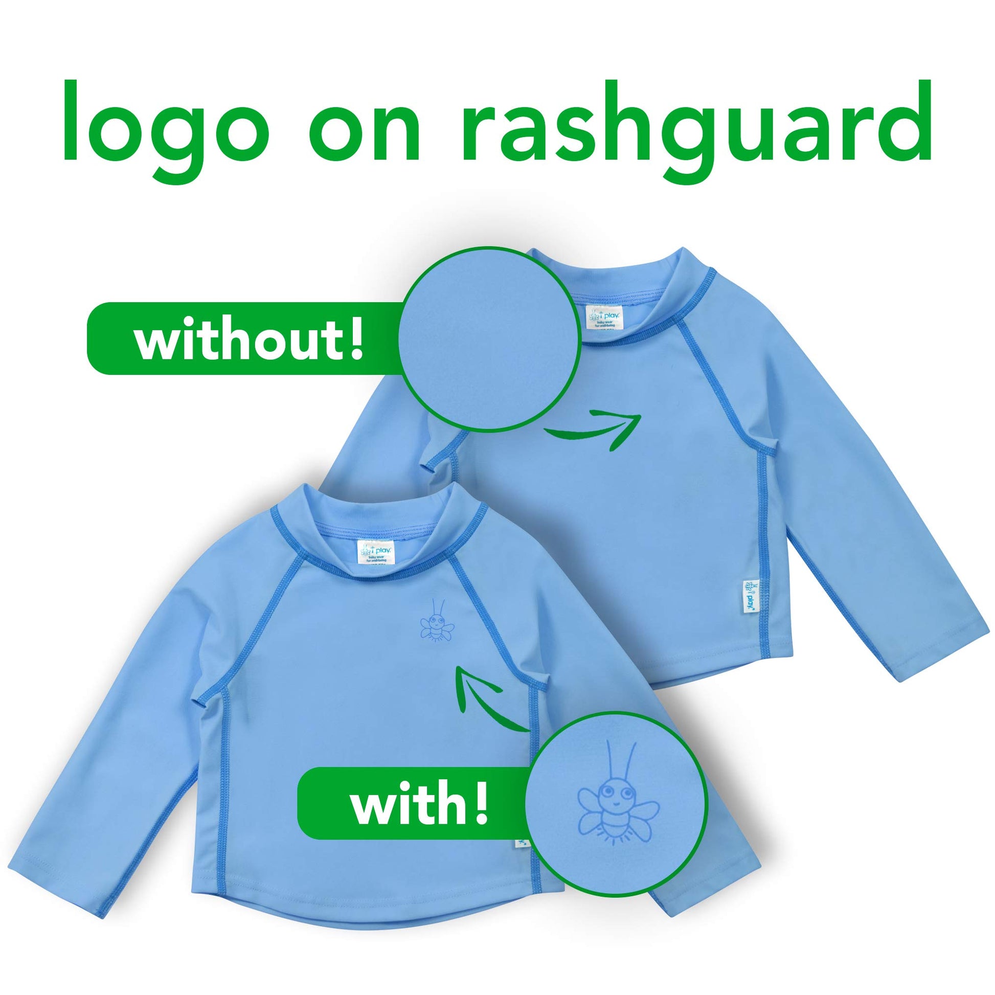 DescriptionThe Long Sleeve Rashguard Shirt provides all-day, UPF 50+ sun protection without having to apply sunscreen to babys delicate skin. The stretchy, quick-dry material, and flatlock seams are comfortable and allow baby to move freely and play actively in and out of the water. The Rashguard Shirt also helps keep baby warm during first swim lessons in the pool. Parents love the variety of bright, fun colors that coordinate with all i play. Swim Wear & Sun Wear!