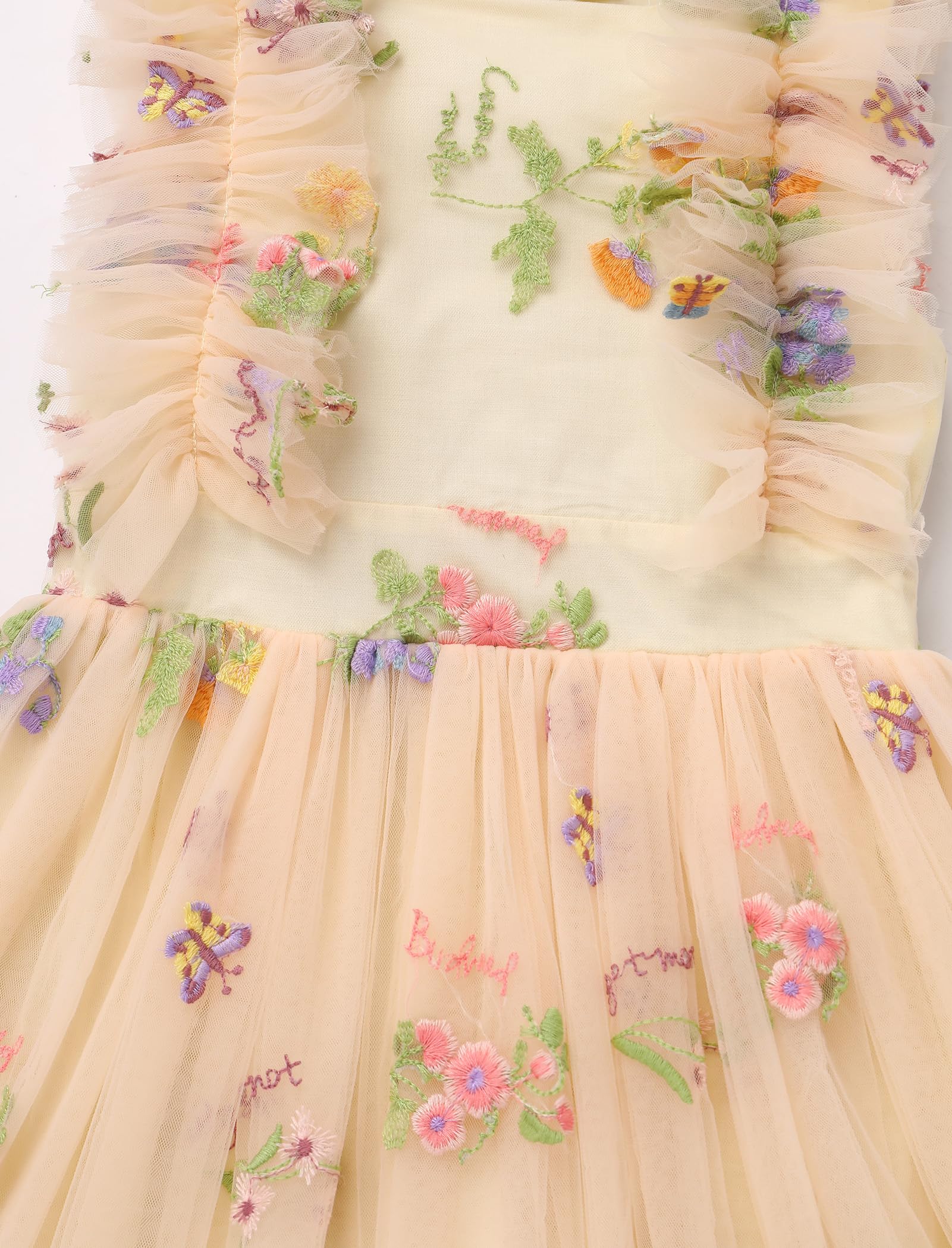 - Q: Does this dress have any special features? A: Yes, the dress features flutter sleeves, ruffles, layered tulle, and a hidden back zipper for easy dressing.