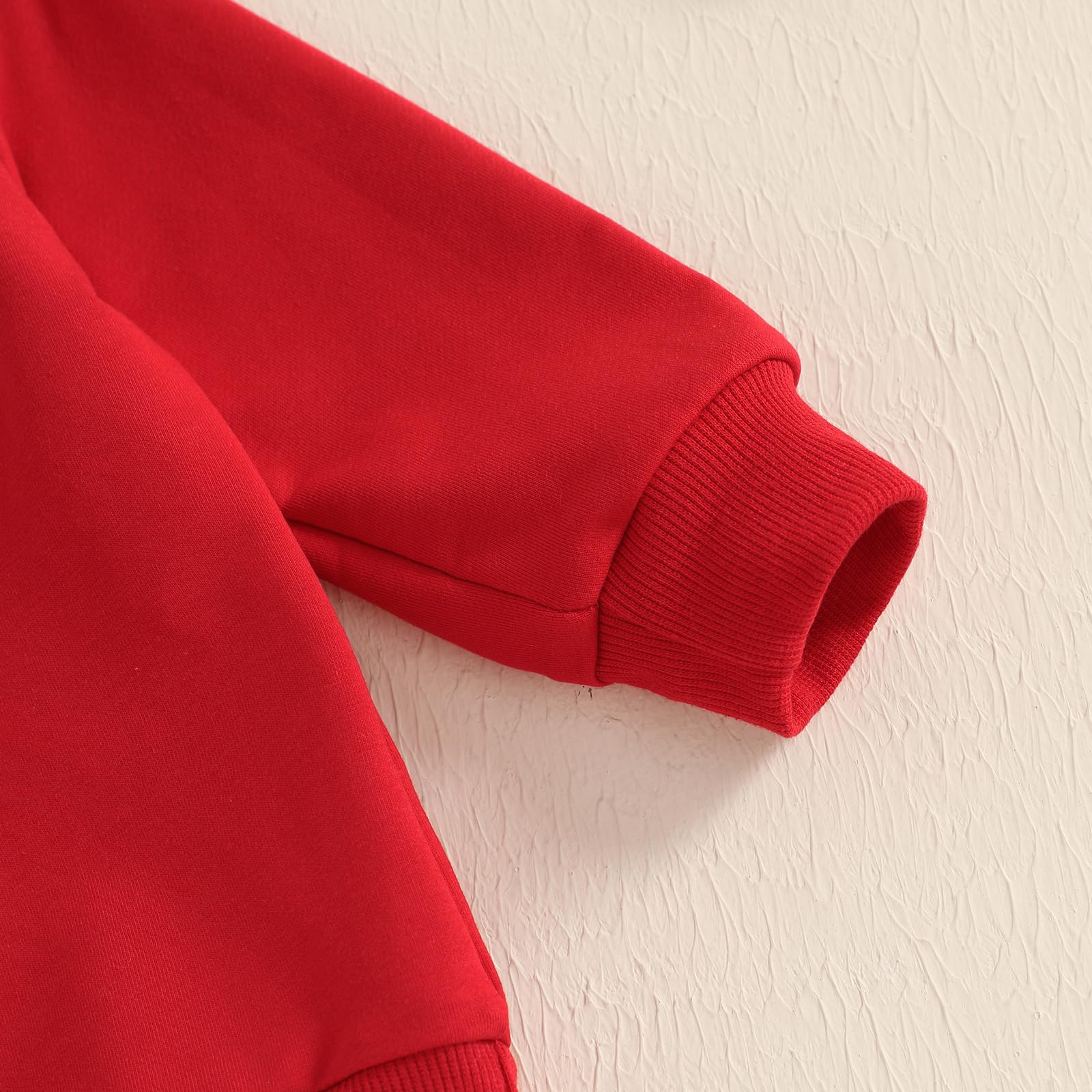 - Q: What is the design of the outfit? A: The outfit features a long-sleeved sweatshirt with a letter design and elastic waistband bell-bottom pants, adorned with heart print elements.