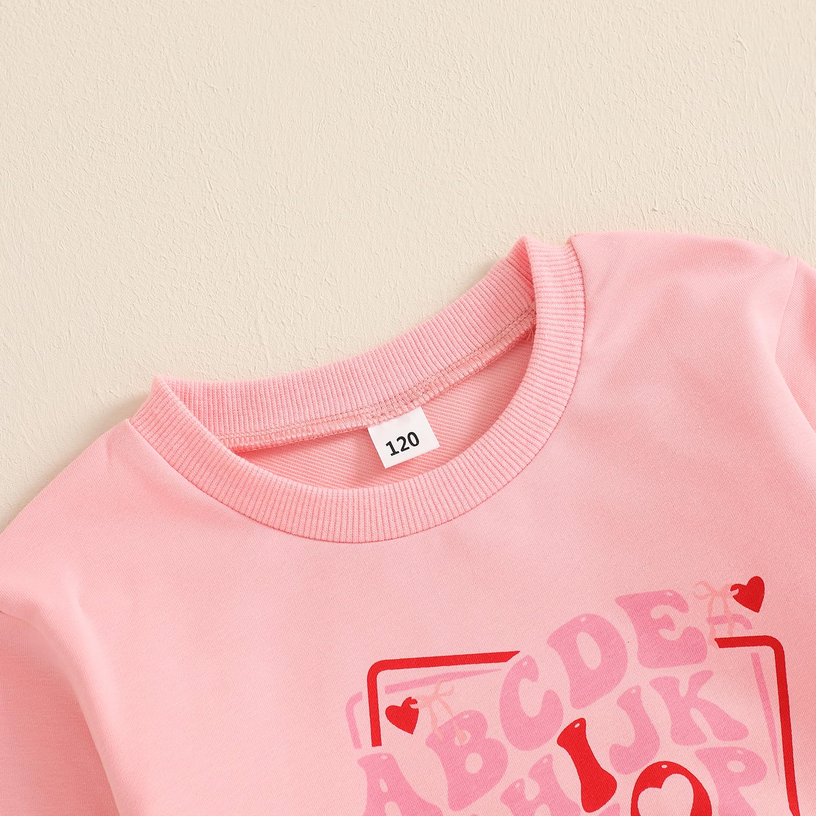 - Q: What is the design of the outfit? A: The outfit features a long-sleeve sweatshirt with a round neck and letter design, paired with elastic waistband bell-bottom pants, creating a stylish look for toddlers.