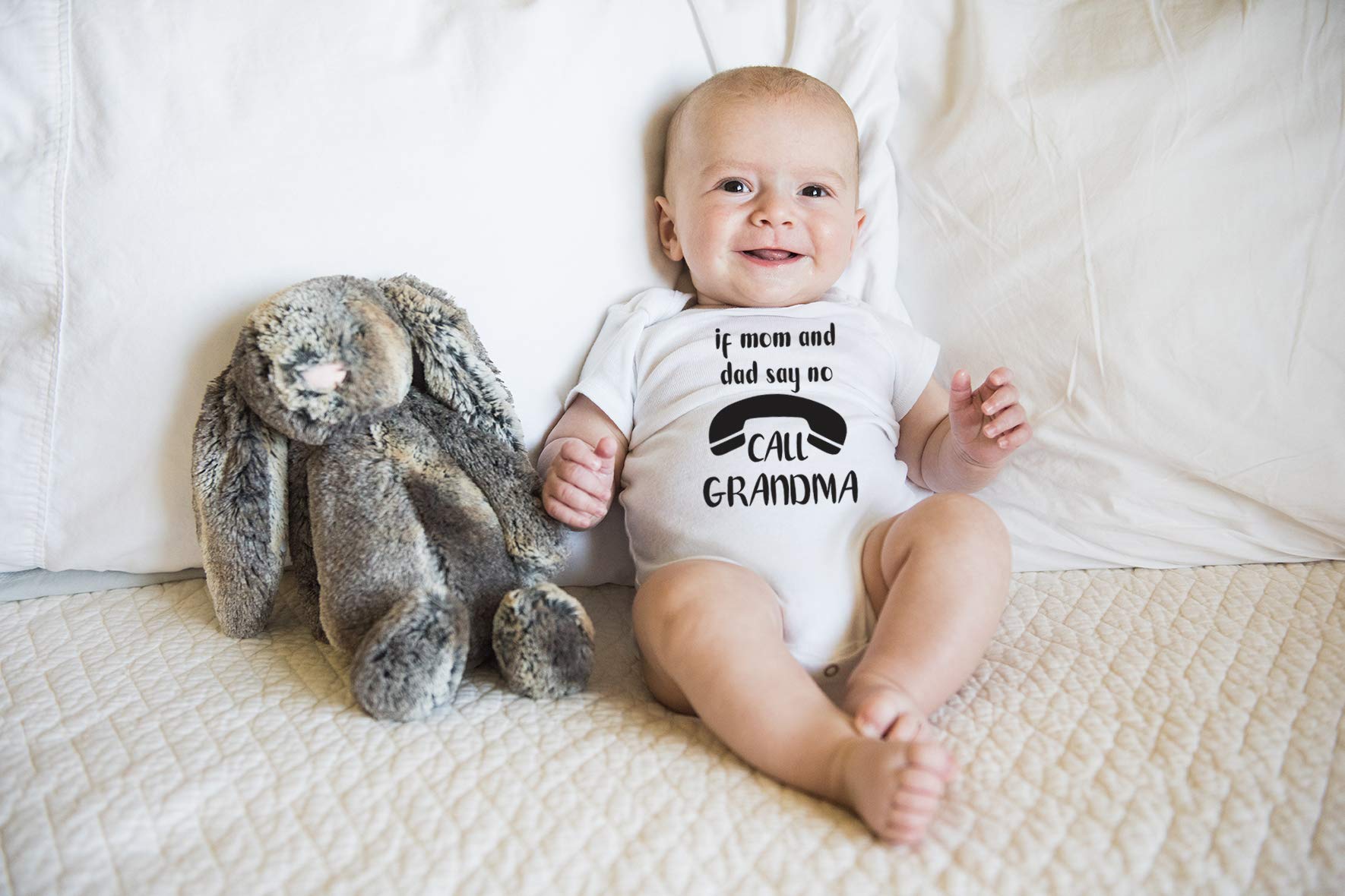 If Mom And Dad Say No Call Grandma - Funny Baby Essentials Bodysuit - Cute Newborn Boy Clothes (12 Months, White)