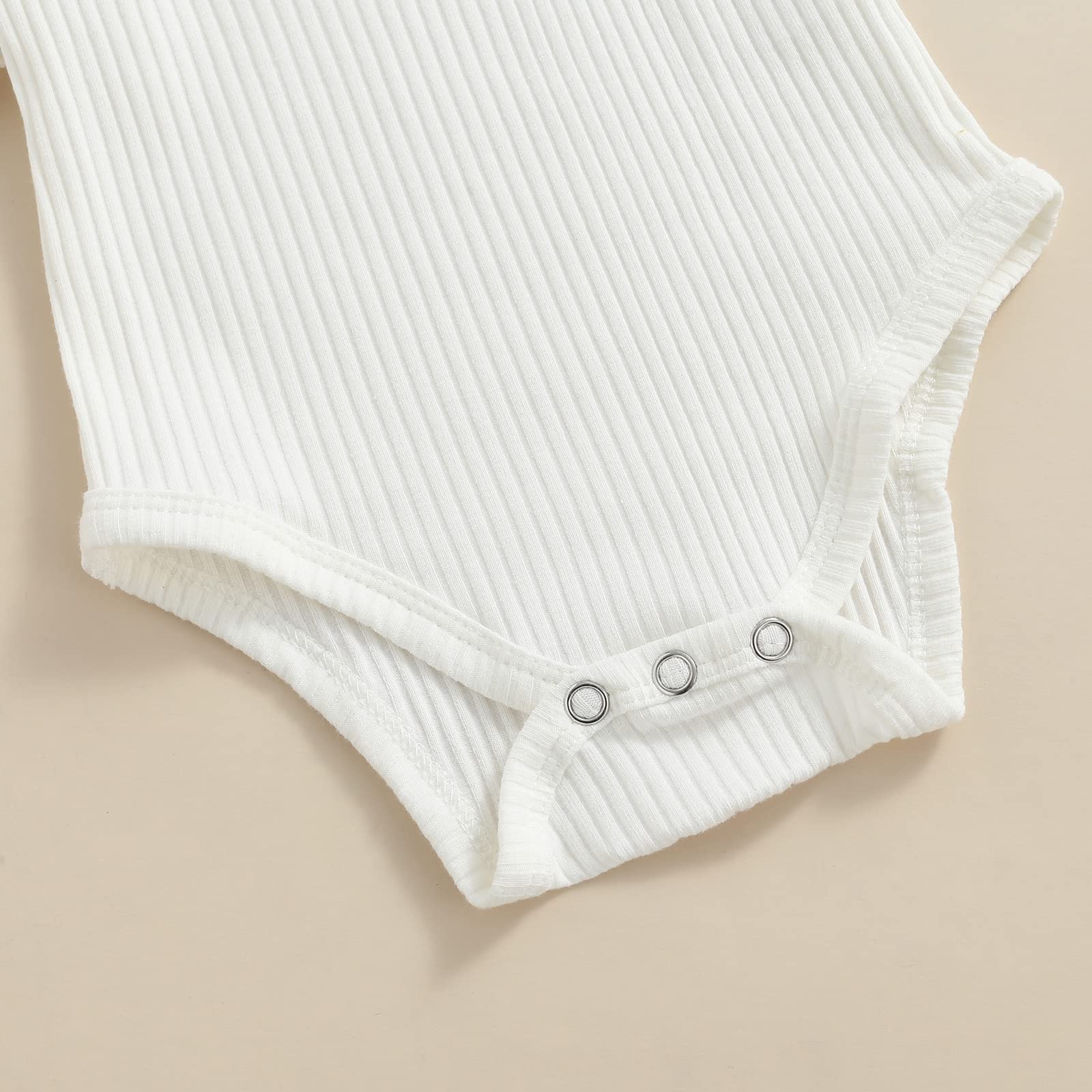 Infant Girls Summer 3Pcs Outfit Sets Ruffle Short Sleeve Ribbed Romper + Suspender Skirt + Headband (A-Pink, 0-3 Months)