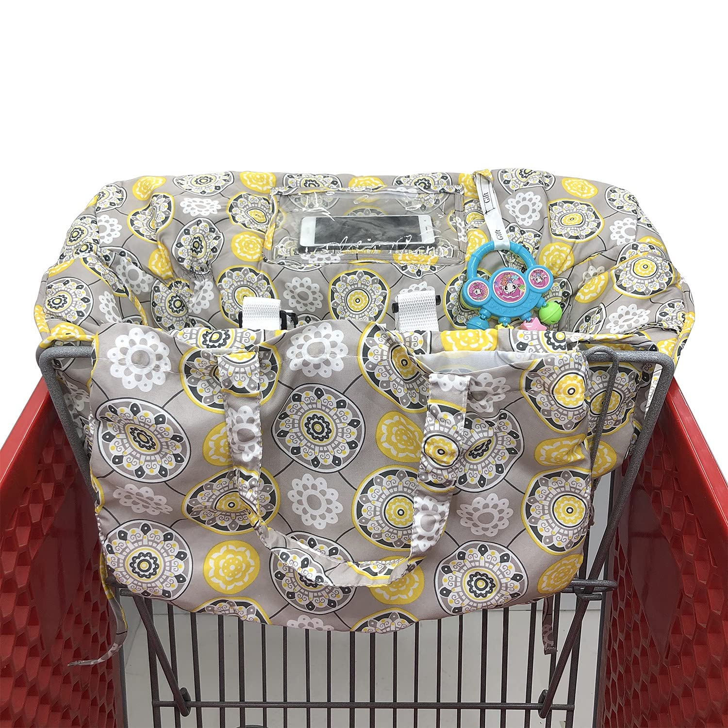 - Q: What size shopping carts does the cover fit? A: The shopping cart cover is designed to fit most standard grocery carts and baby high chairs.
