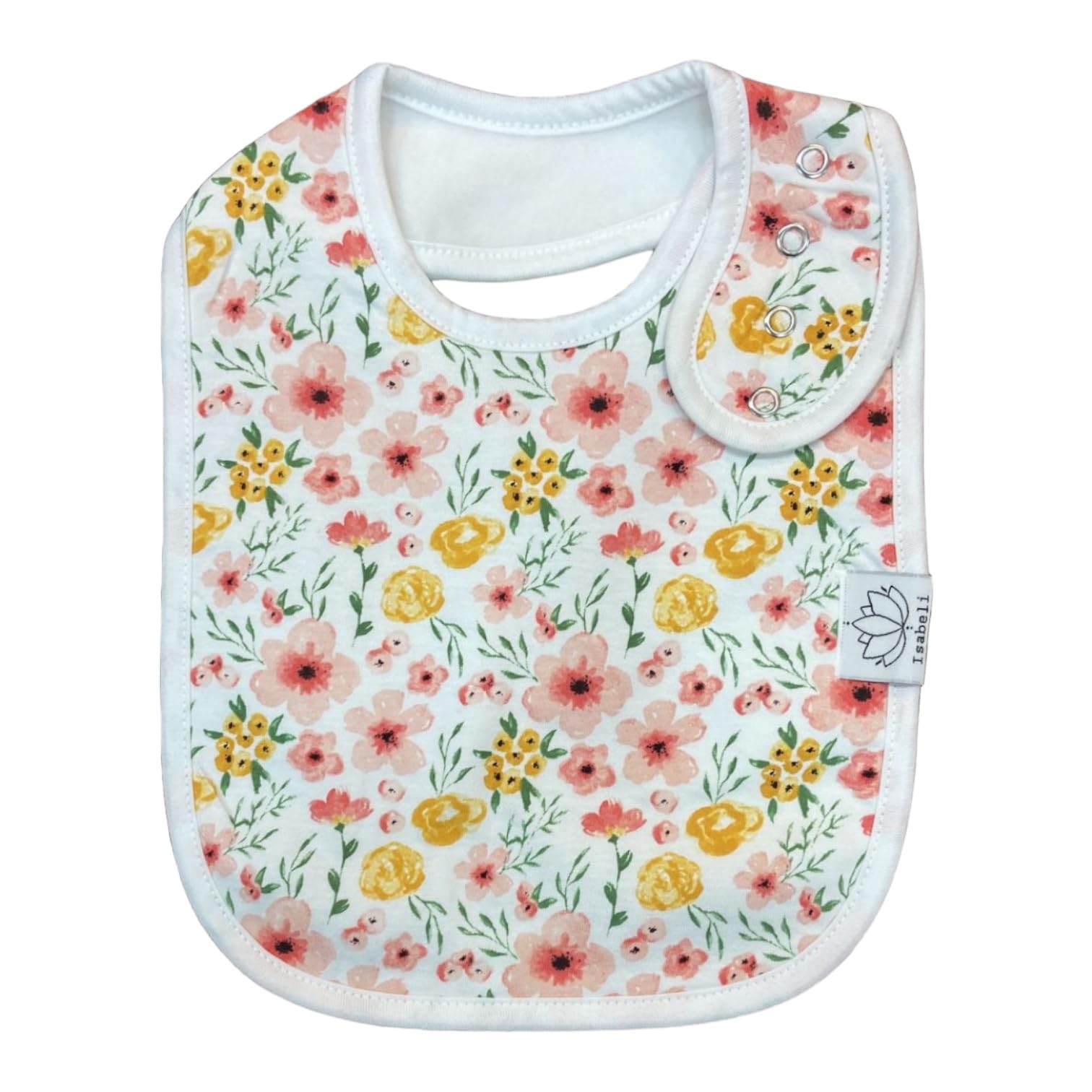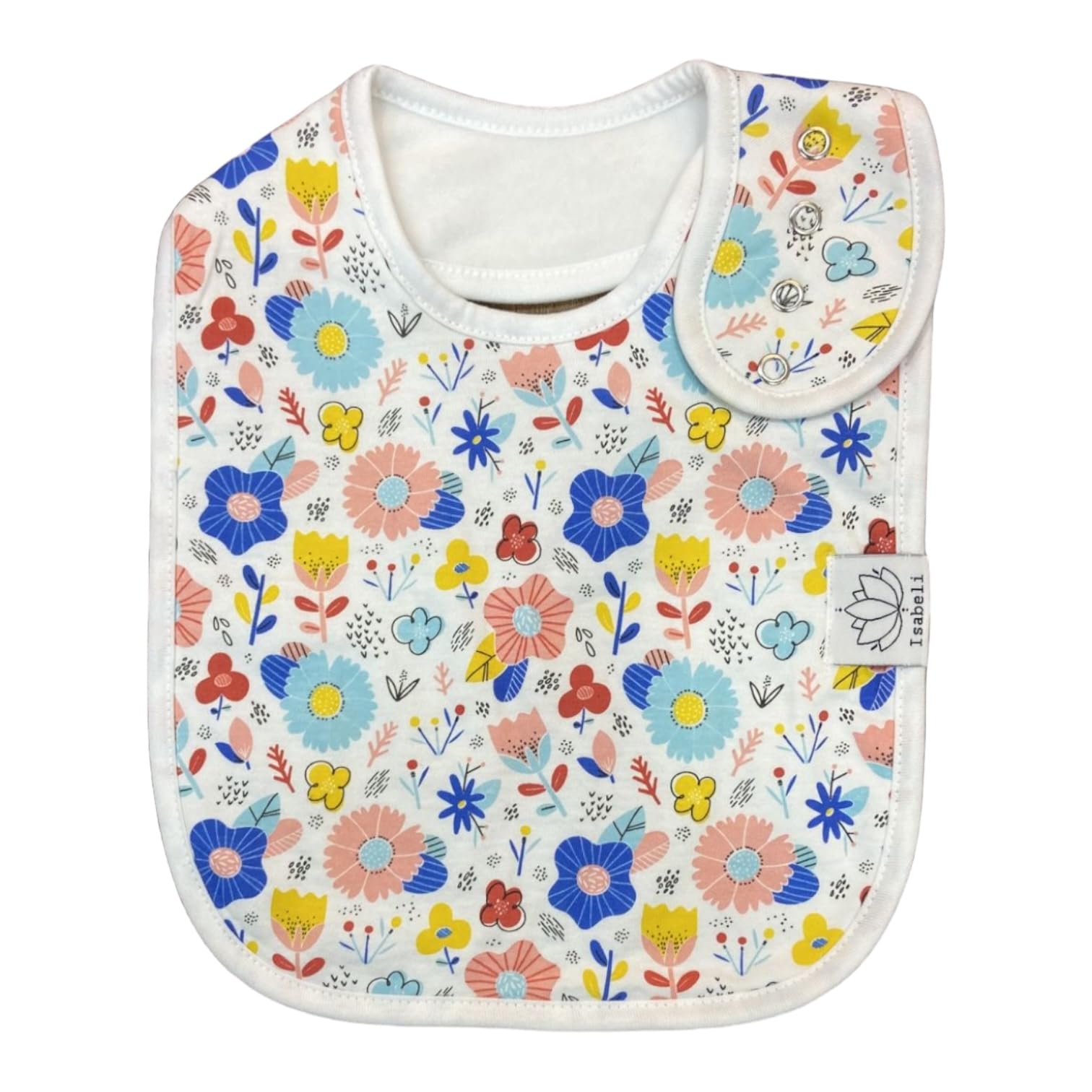 - Q: What styles are available in the Isabeli bib pack? A: The pack features floral designs that add a stylish touch to your baby's mealtime.