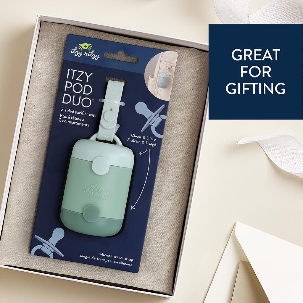 - Q: What colors are available for the Itzy Ritzy Pacifier Holder? A: The Itzy Ritzy Pacifier Holder is available in several trendy colors, including Sage, to match your style and baby essentials.
