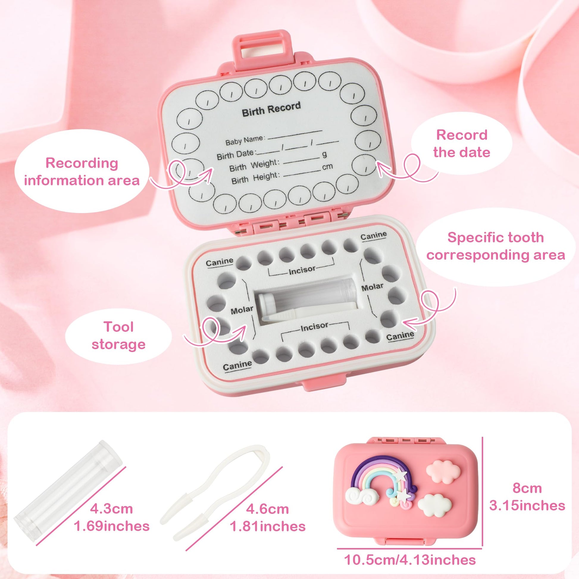 - Q: What features make this tooth container unique? A: The tooth container includes a practical design with multiple sections for labeling, the ability to record growth milestones, and a cute appearance that appeals to both children and parents.