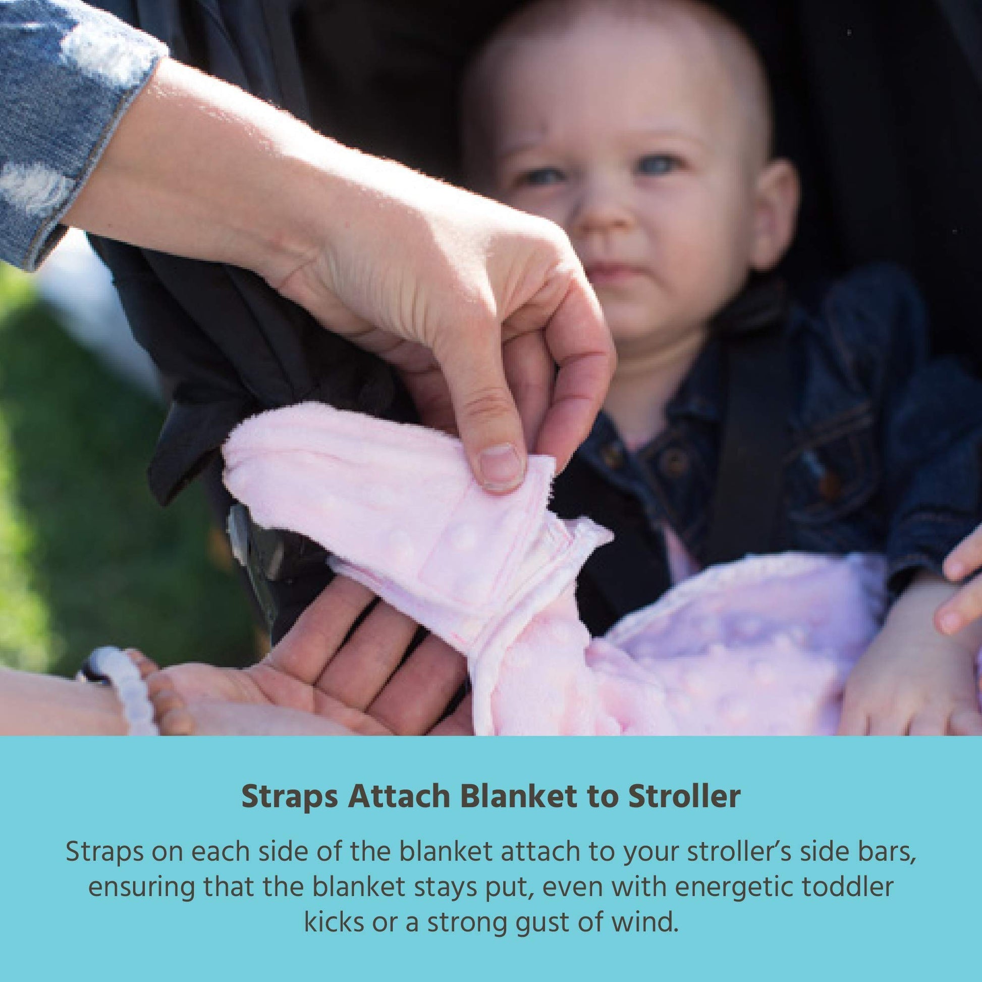 - Q: What materials are used in the stroller blanket? A: The stroller blanket is made from soft minky fabric on one side and coordinating silky fabric on the other, providing comfort and warmth.