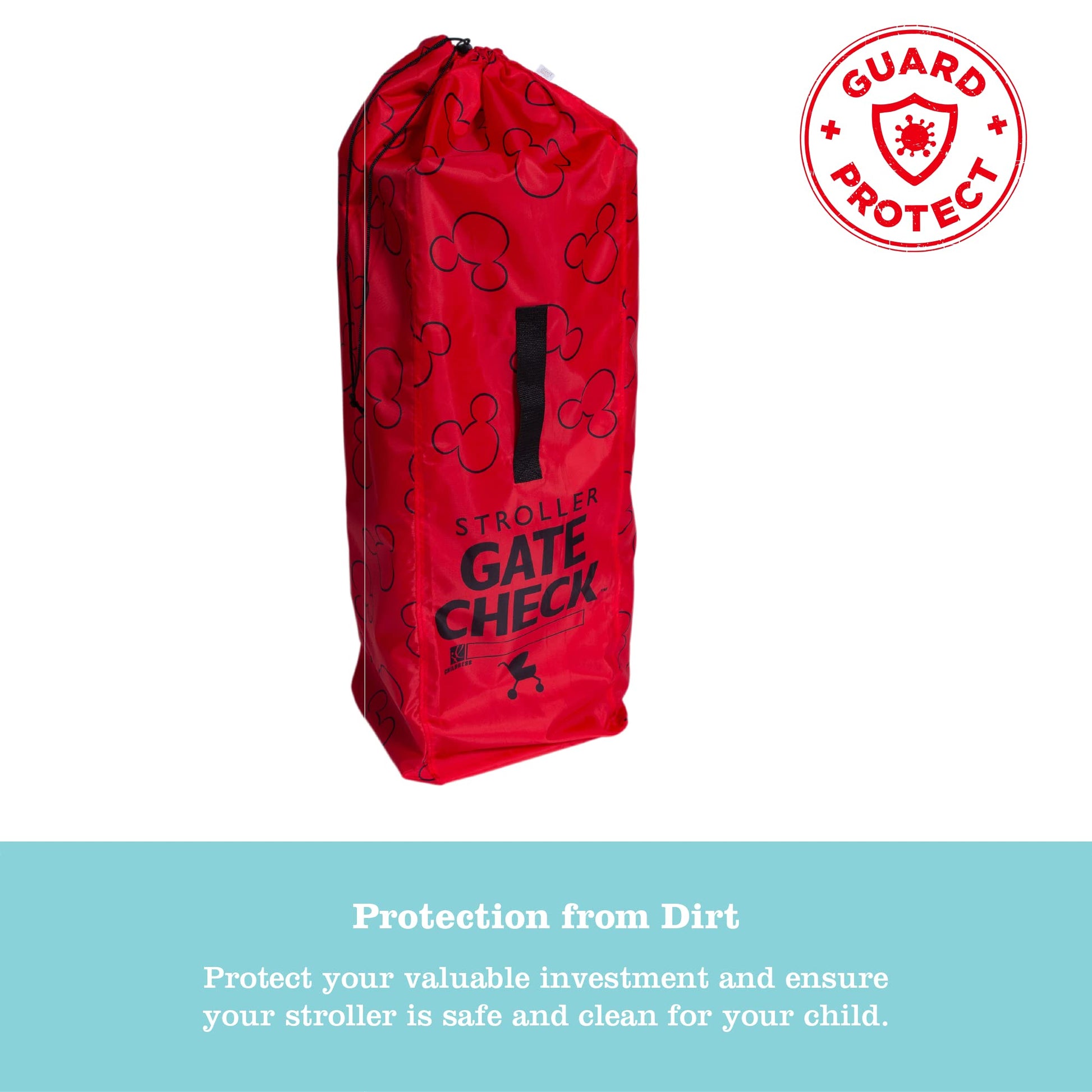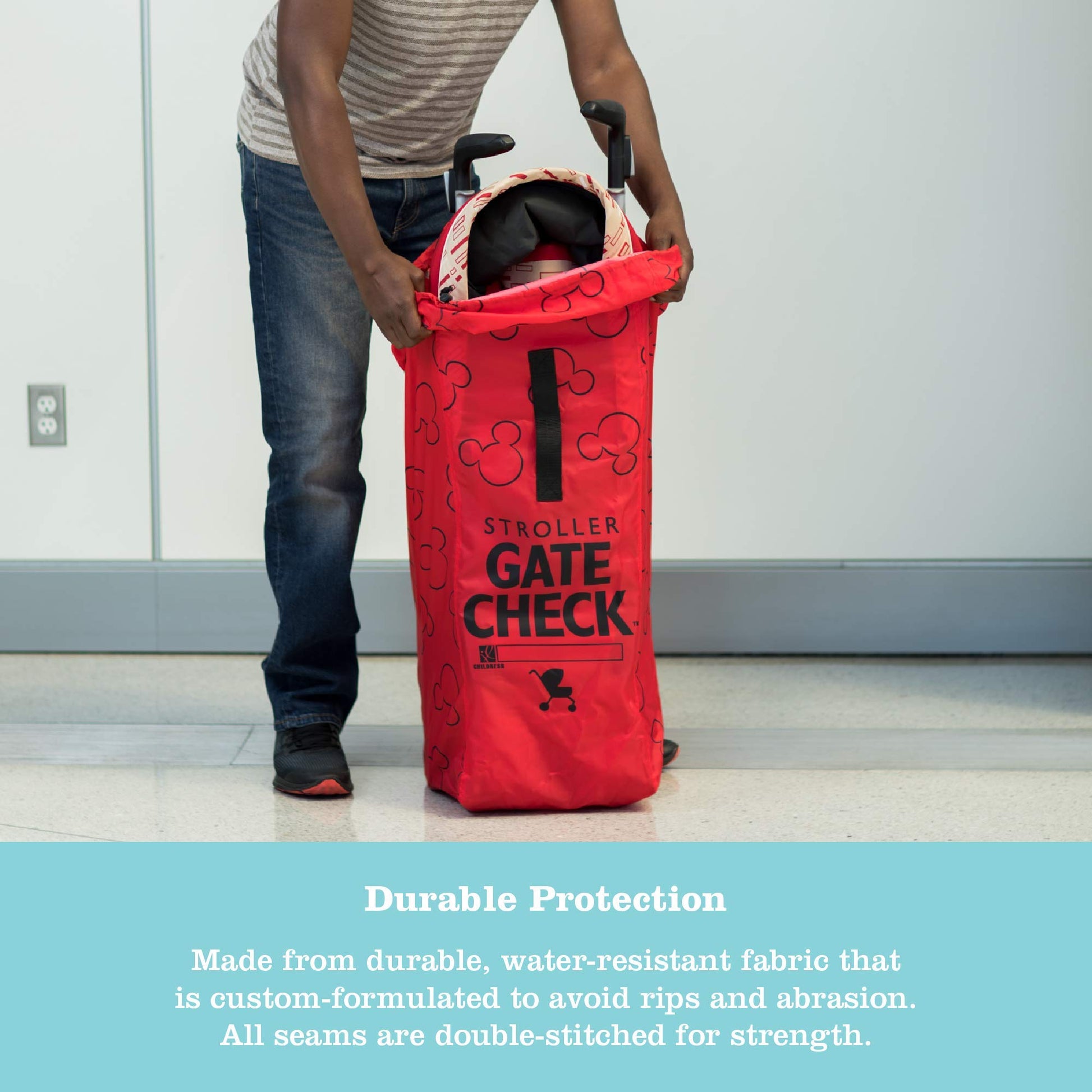 - Q: What type of strollers does the J.L. Childress Disney Baby Gate Check Bag fit? A: The J.L. Childress Disney Baby Gate Check Bag is designed to fit most single umbrella strollers.