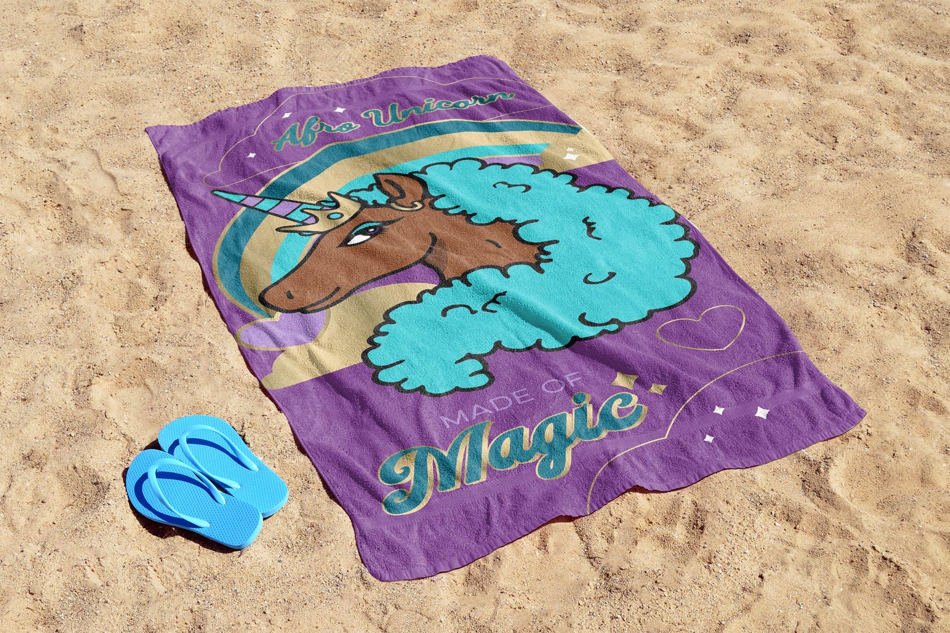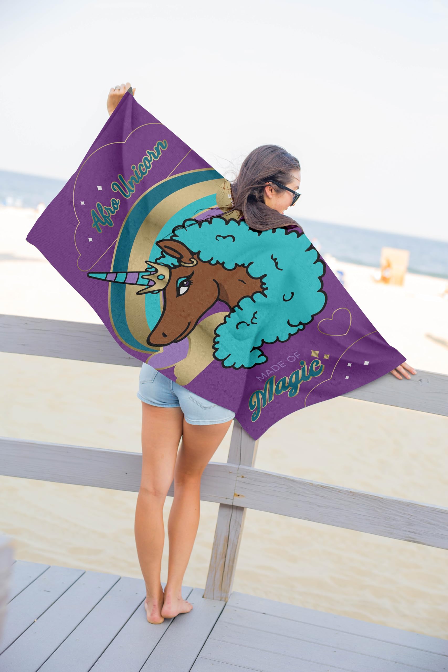 • Q: Is the towel suitable for both beach and bath use? A: Yes, the Afro Unicorn towel is designed for use at the beach, pool, or bath, making it versatile for different occasions.