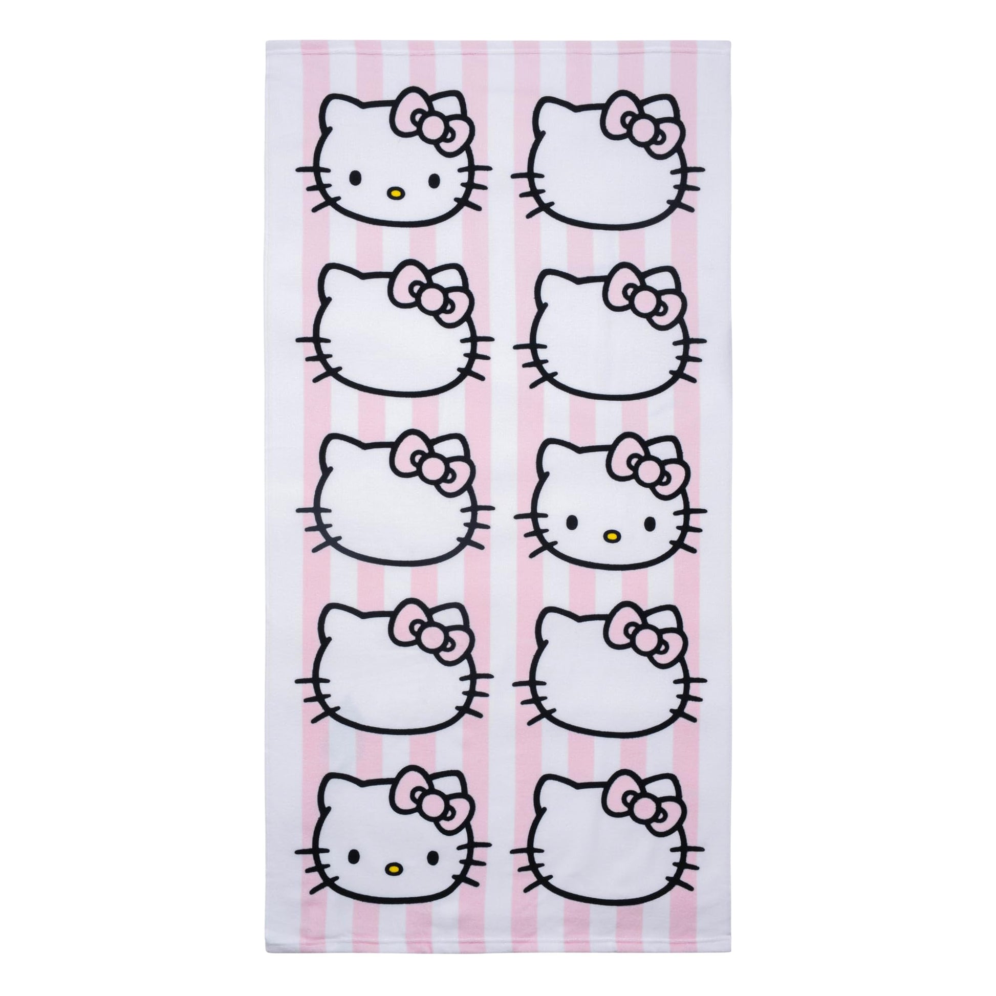 • Q: What material is the Hello Kitty bath towel made of? A: The bath towel is made from 100% polyester.