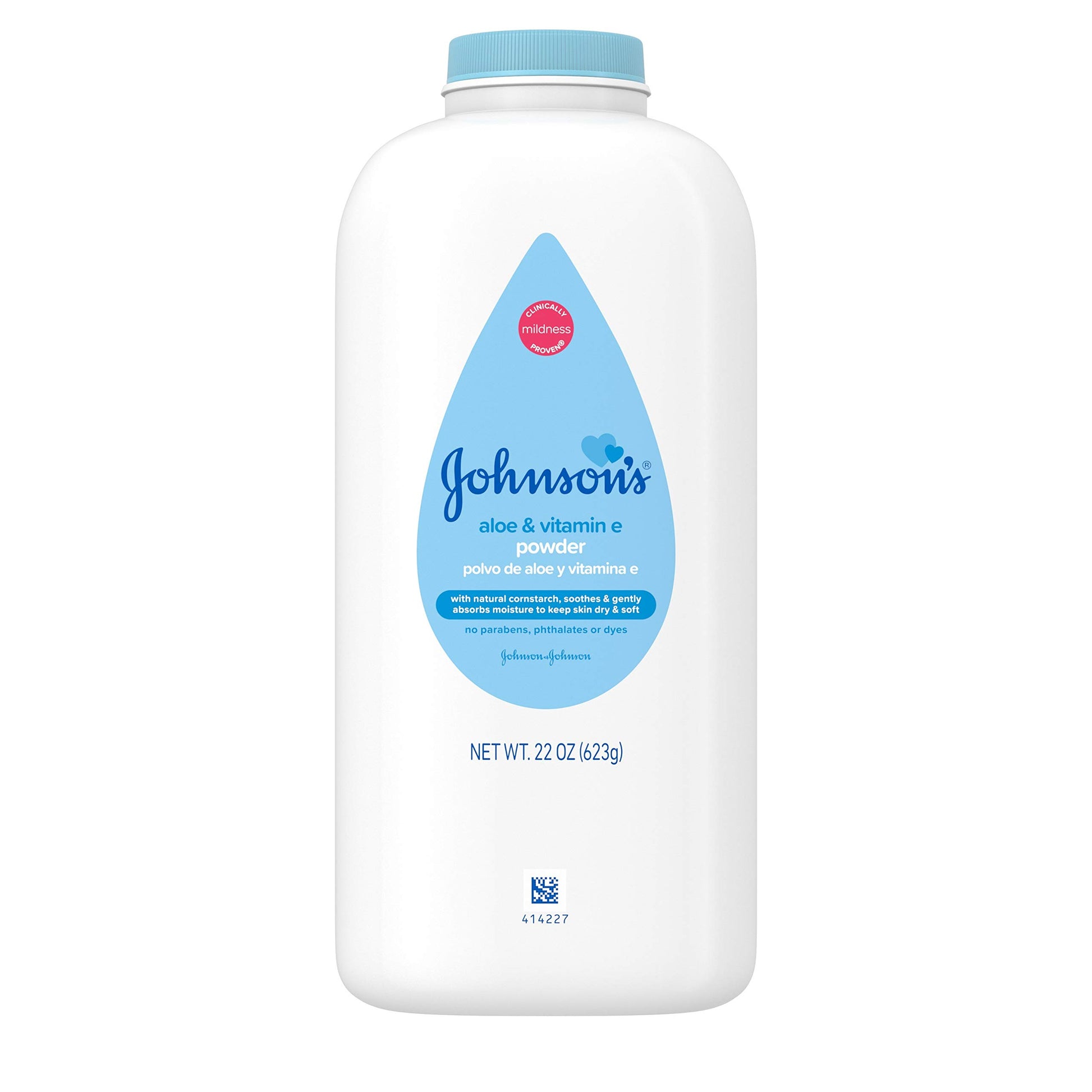 - Q: What are the main ingredients in Johnson's Baby Powder? A: Johnson's Baby Powder contains naturally derived cornstarch, aloe, and vitamin E, which help absorb moisture and soothe delicate skin.