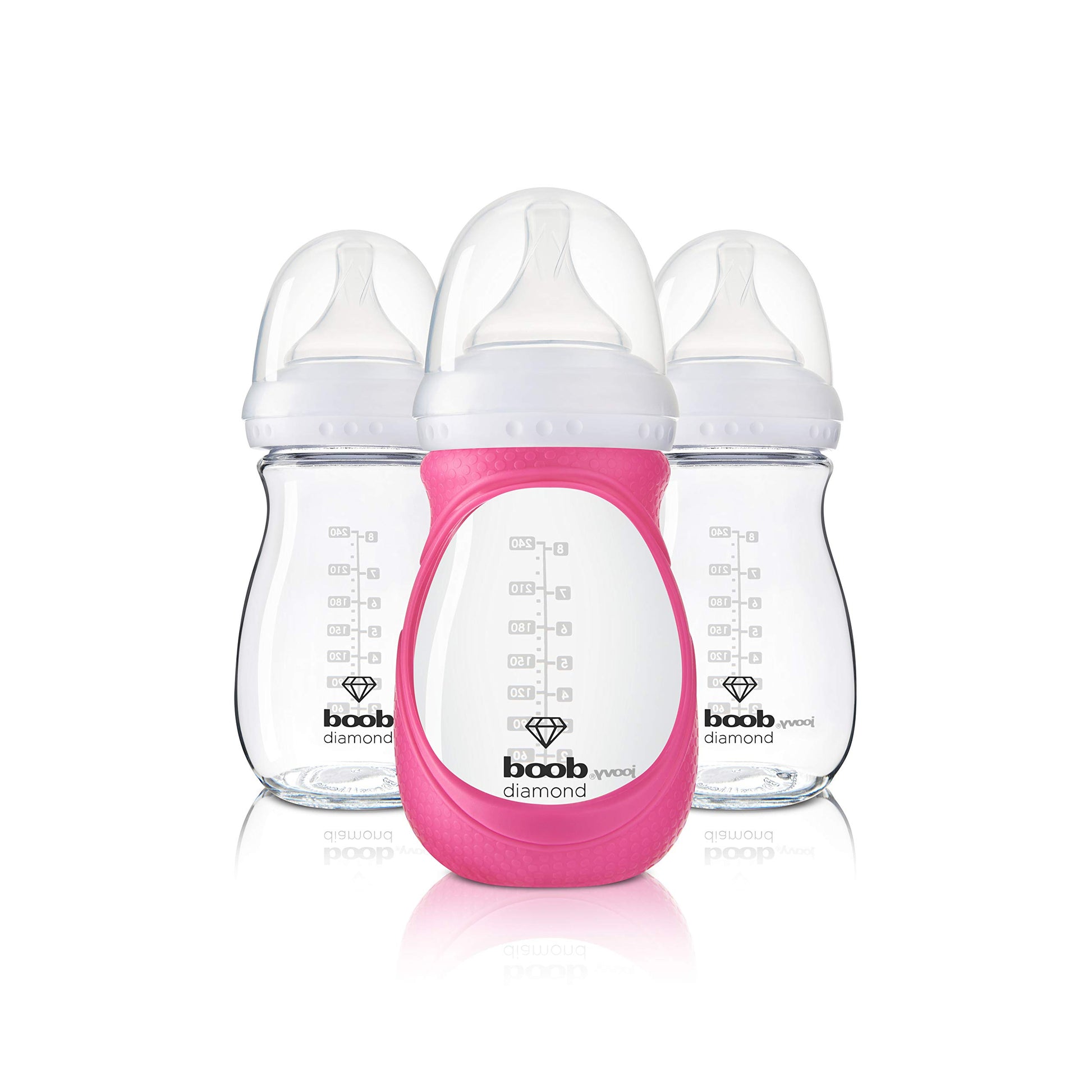 - Q: Can I use different nipple types with this bottle? A: Yes, the JOOVY Boob Diamond bottle can be paired with any nipple type, and you can choose from five different nipples for the optimal flow for your baby's age and stage.