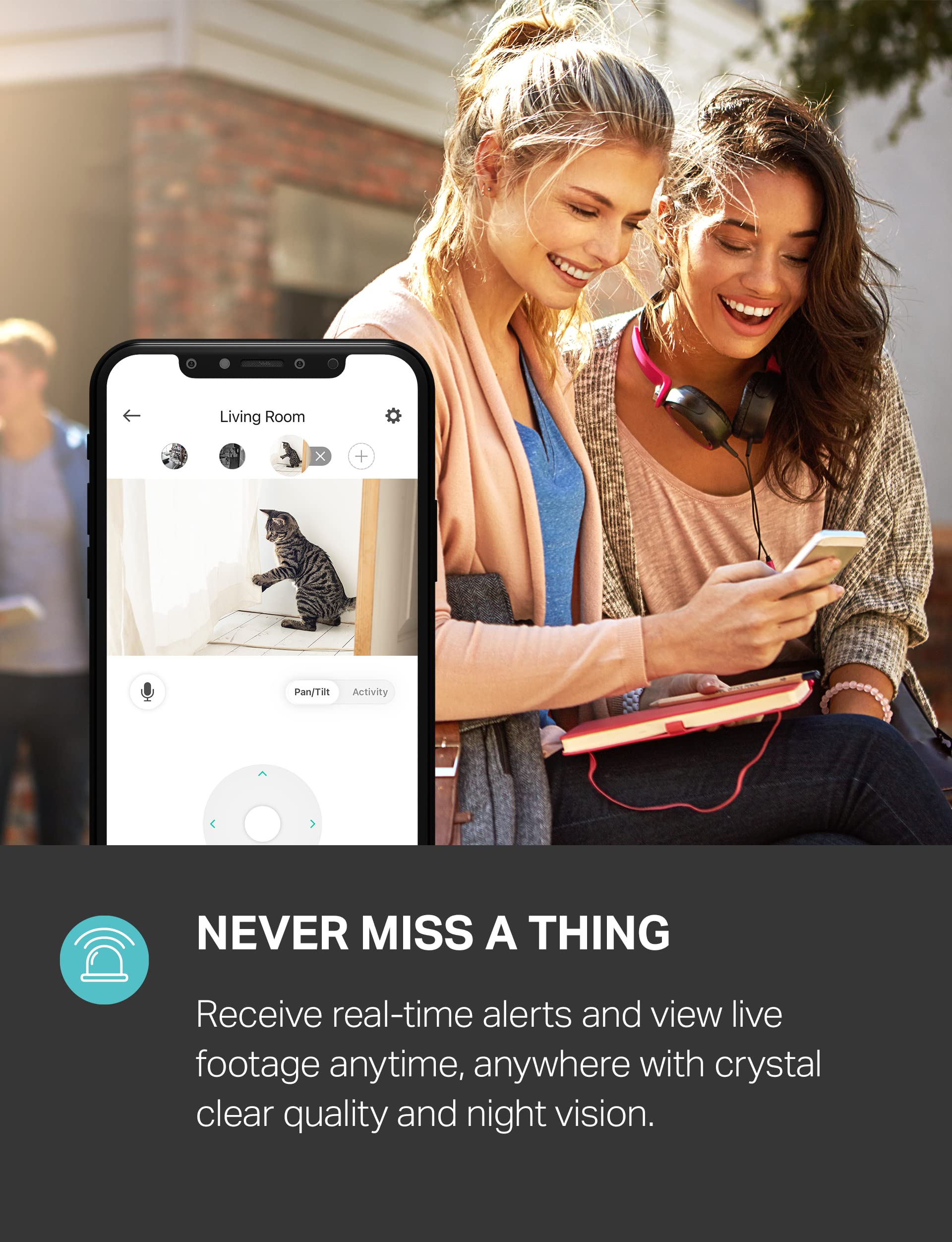 DescriptionExperience complete surveillance of your living space with the Kasa Spot Pan Tilt camera. This camera sends instant alerts and allows live streaming of 1080p HD video to your smartphone, Alexa or Google Home supported display, even in low light conditions with its 30 ft. Night Vision. You can store footage continuously on a local MicroSD card of up to 256 GB (not included) or opt for premium cloud storage options.