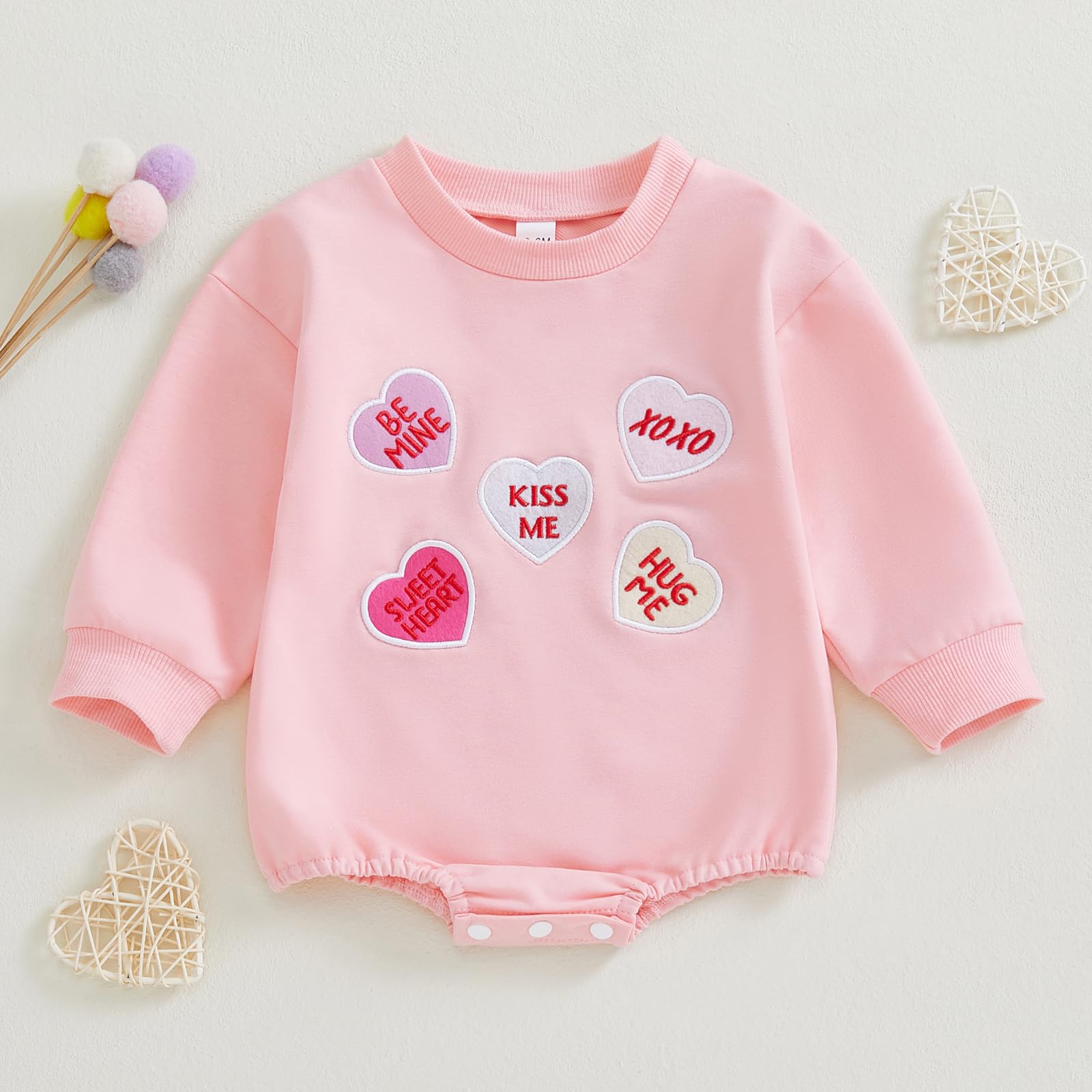 - Q: Does this outfit have any special design features? A: Yes, this outfit features romantic heart embroidery, long sleeves, a round neck, and crotch buttons for easy dressing and undressing.