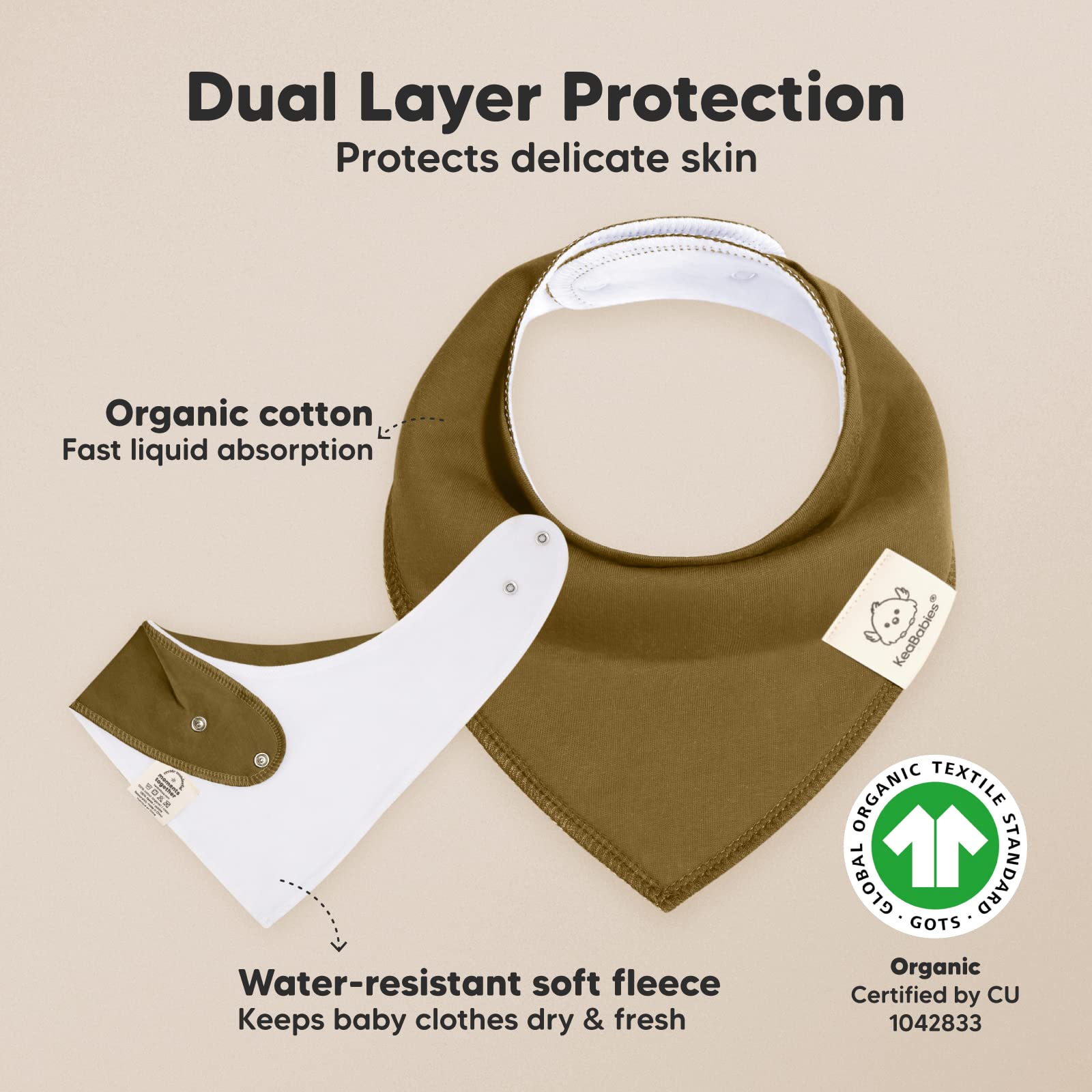 - Q: What materials are the KeaBabies Organic Baby Bandana Drool Bibs made from? A: The KeaBabies Organic Baby Bandana Drool Bibs are made from certified baby-safe organic cotton and feature a dual-layer design for superior absorbency.