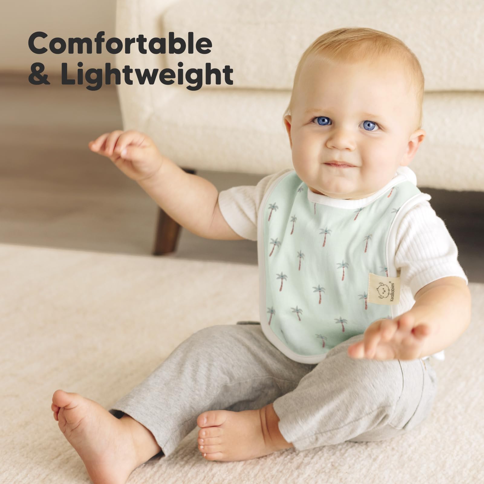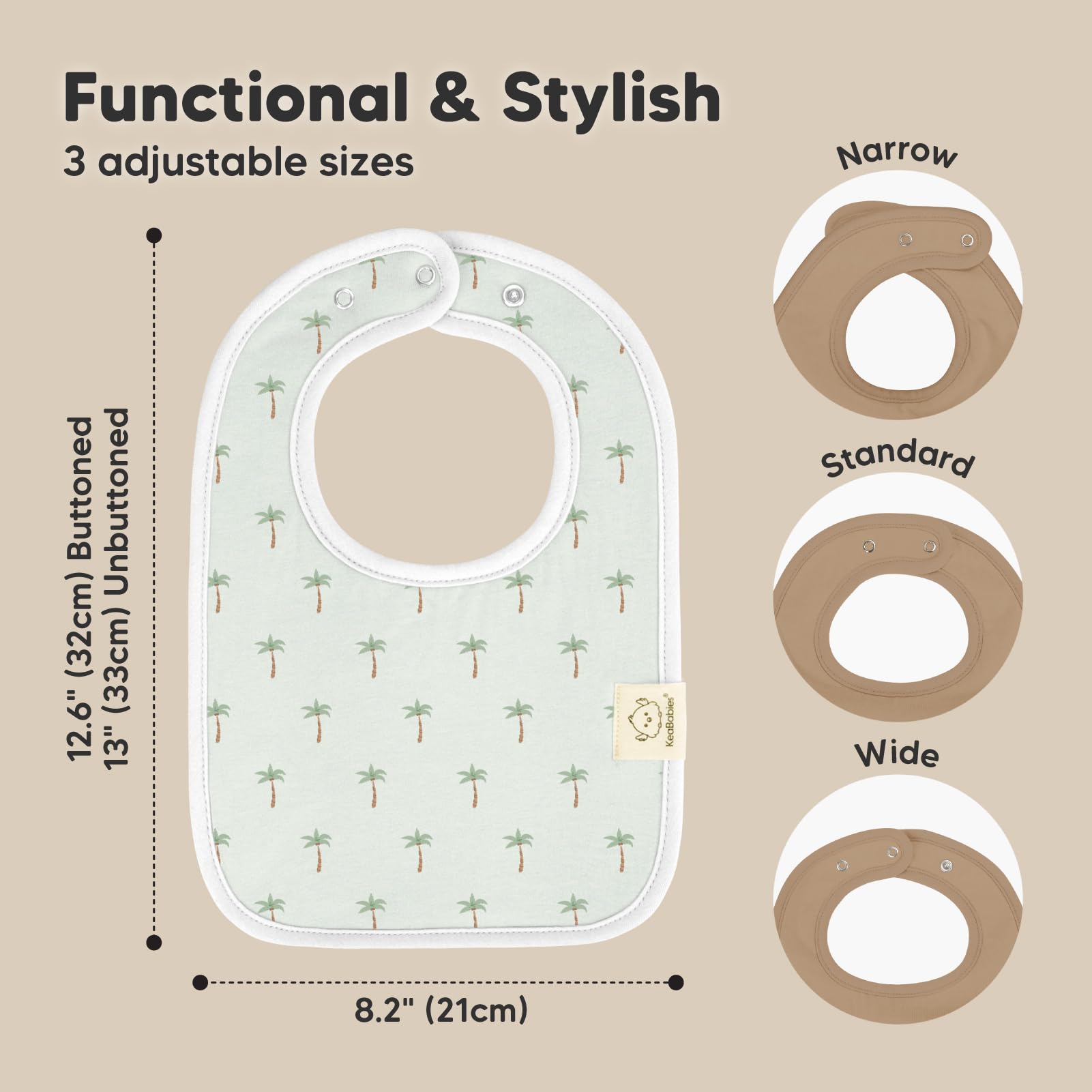 - Q: What are the main features of the KeaBabies Organic Baby Bibs? A: The KeaBabies Organic Baby Bibs feature an 8-pack of super absorbent cotton bibs with a water-resistant soft fleece backing. They are suitable for infants and toddlers aged 0-24 months, have adjustable nickel-free snaps for a comfortable fit, and a rectangular flap design for maximum coverage.