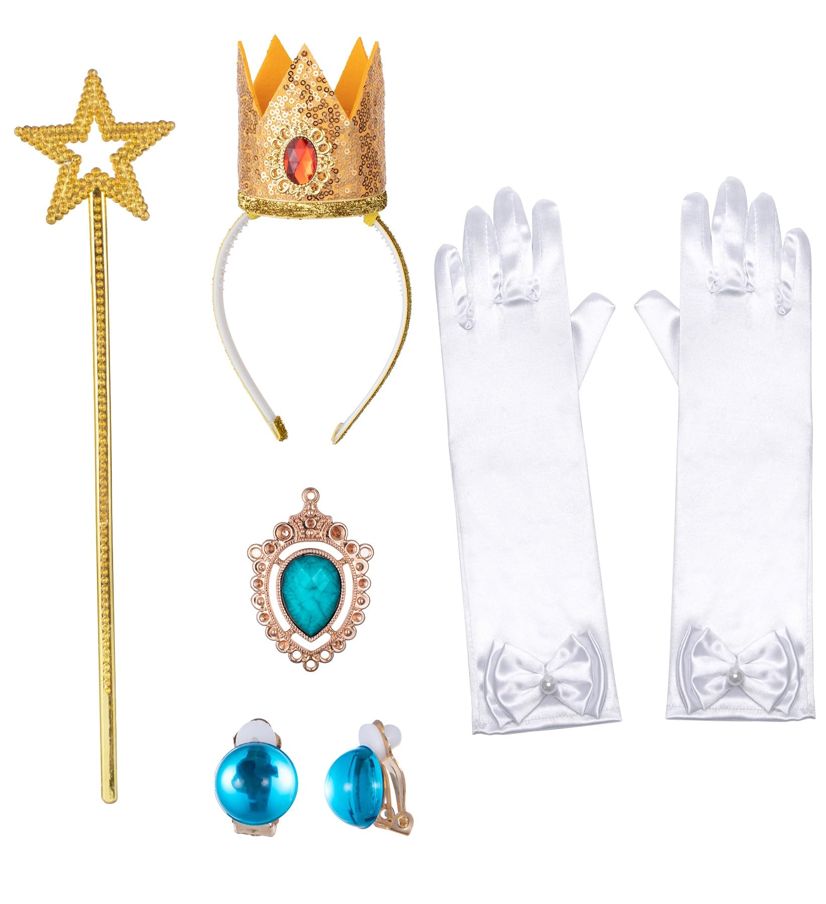 - Q: Does the costume come with accessories? A: Yes, the costume comes with rich accessories including a crown, wand, earrings, brooch, and gloves, making it a complete set.