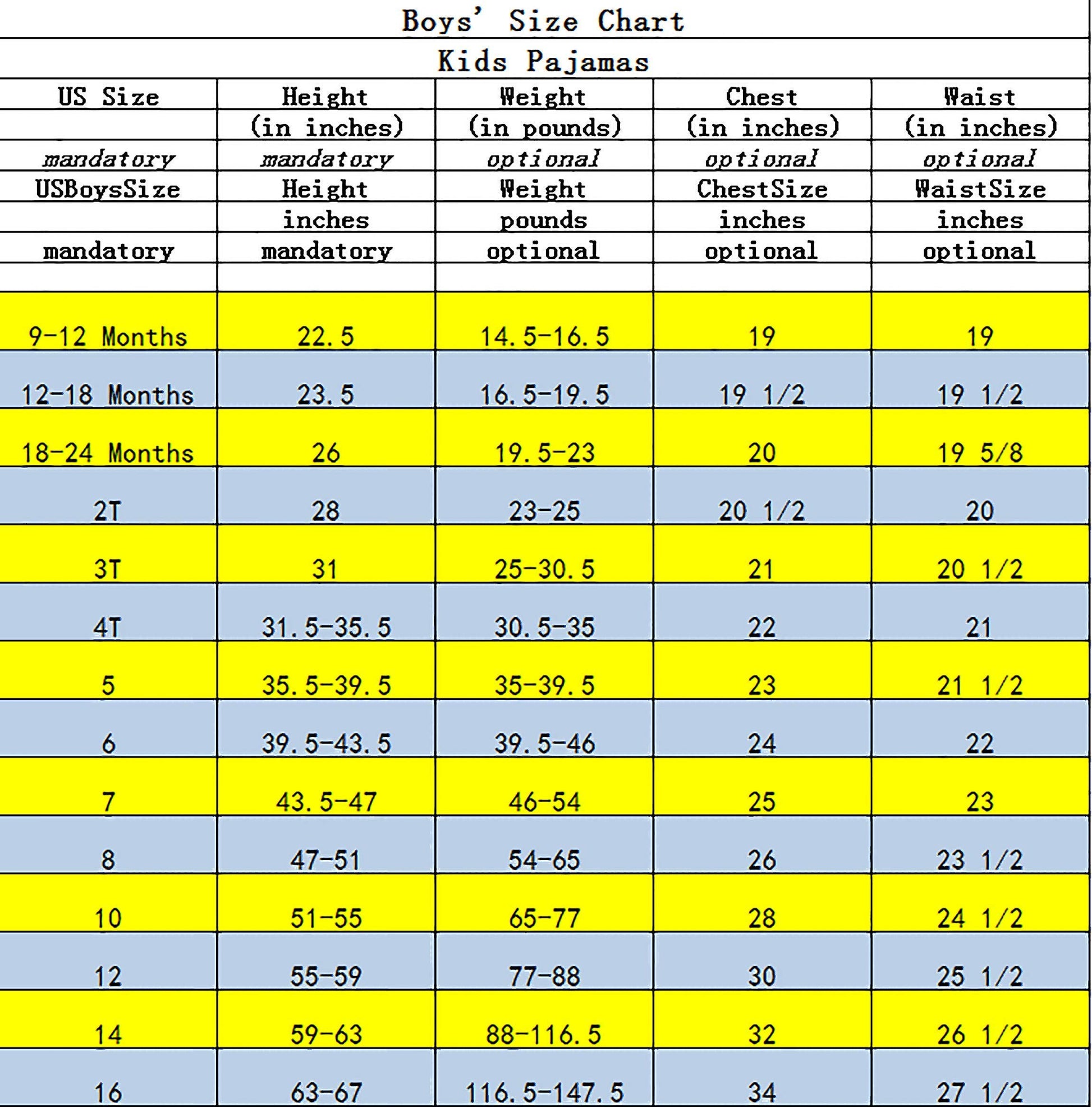 - Q: What sizes are available for the KikizYe Baby Pajama Set? A: The KikizYe Baby Pajama Set is available in sizes 12-18 months and 18-24 months. Additionally, sizes 2T and 3T are also available, with adjacent sizes being interchangeable.