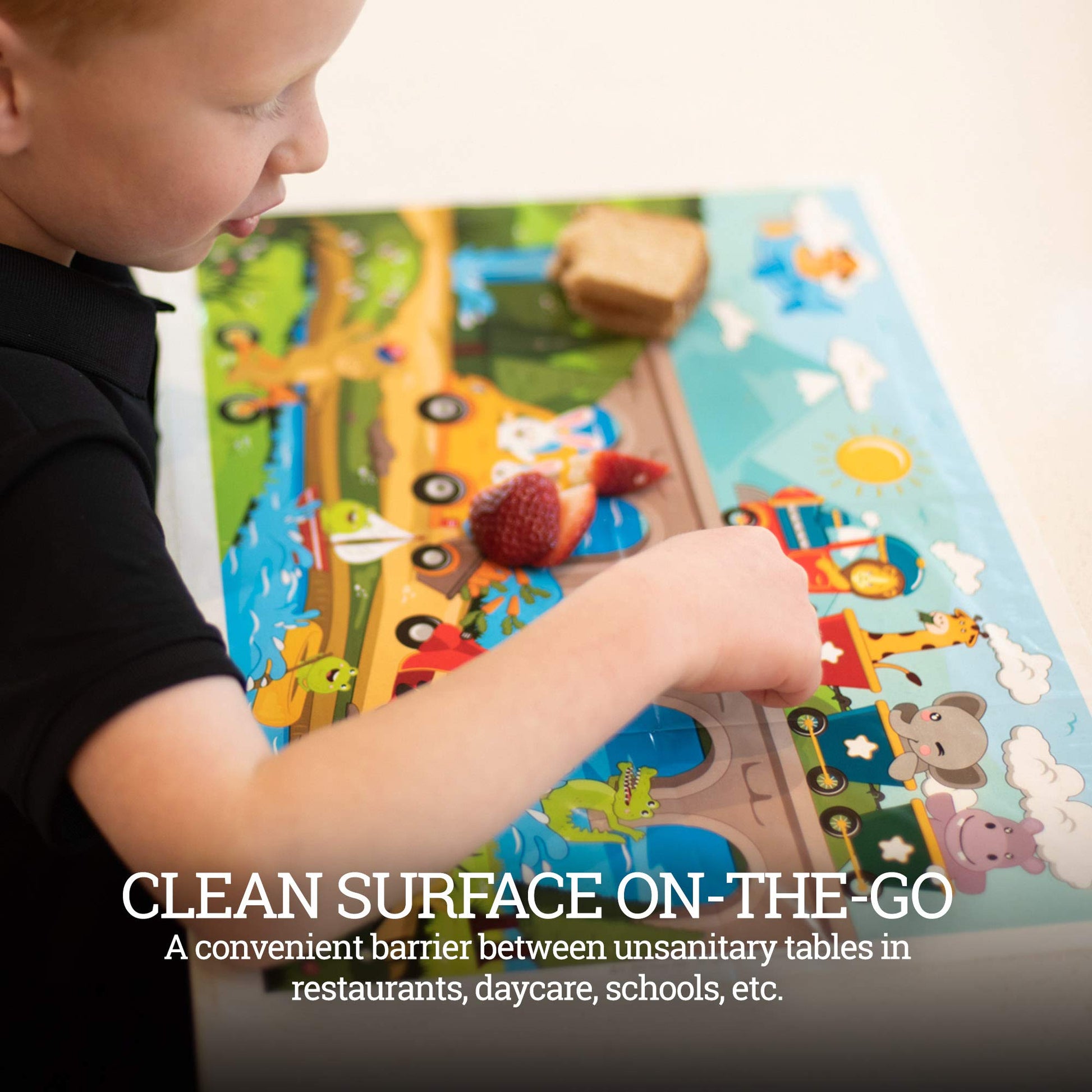 We know that you value a table topper that will stay in place when feeding your children. Our baby placemats for restaurants are designed to cling tightly to tables, without leaving residue after removal! Kids of all ages love our placemats, and they also double as a craft mat for those super messy projects that you don't want on your table. Disposable placemats for baby and disposable placemats for kids that stick will be a hit in your home, when you travel, and at birthday parties.