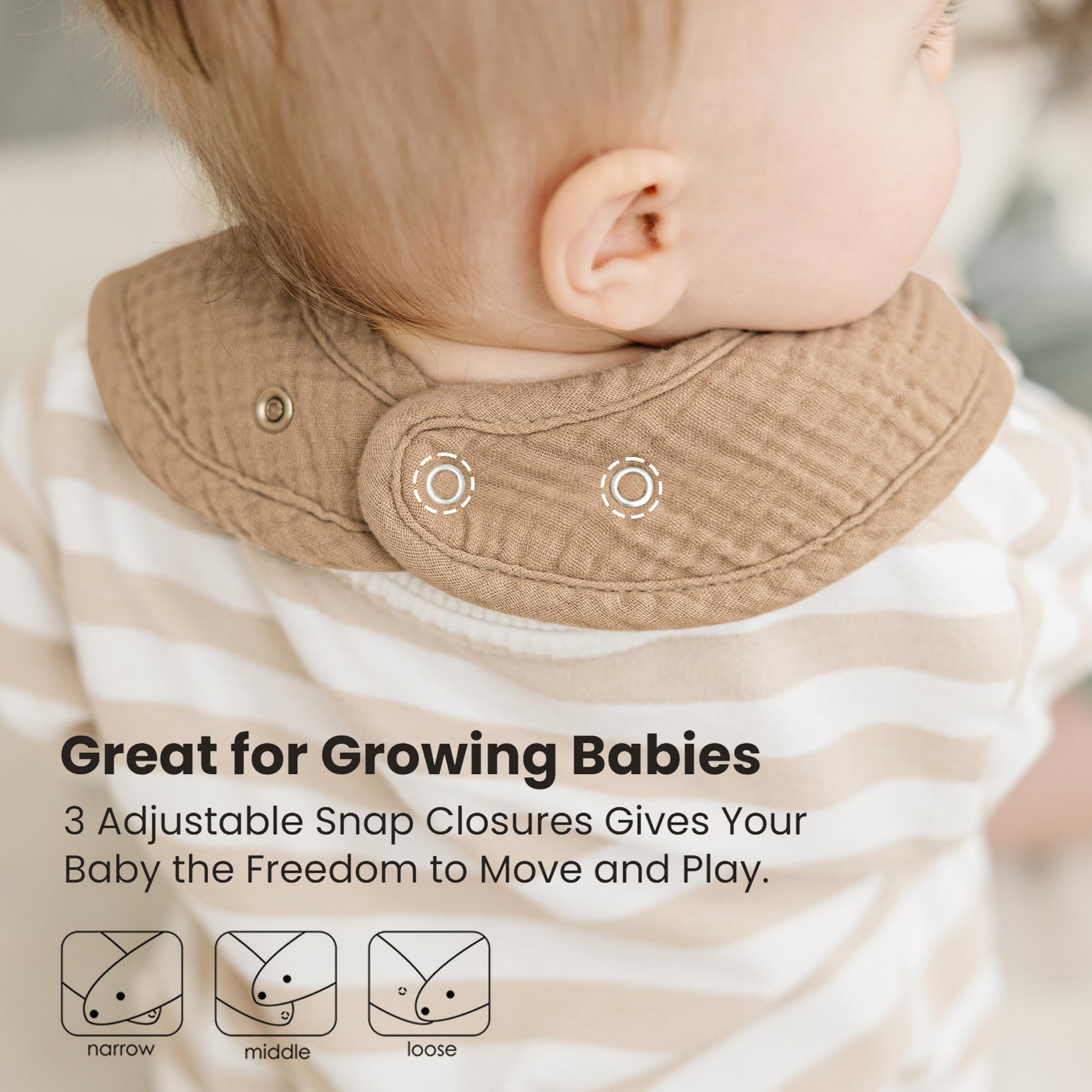 - Q: How adjustable are the bibs? A: The bibs feature two nickel-free snaps, allowing for easy adjustment to ensure a comfortable fit around your baby’s neck.