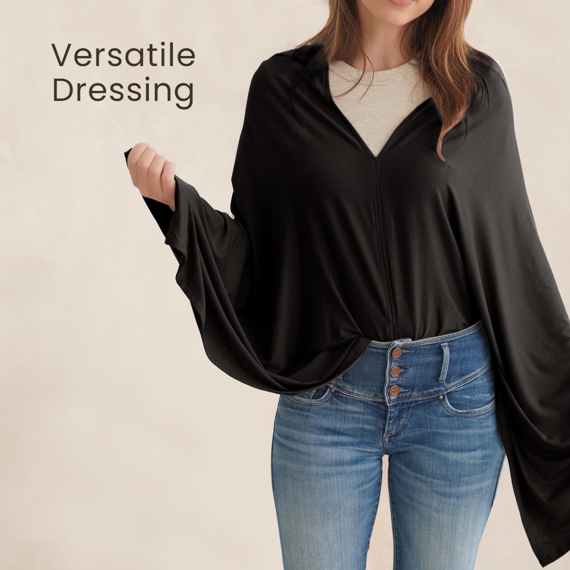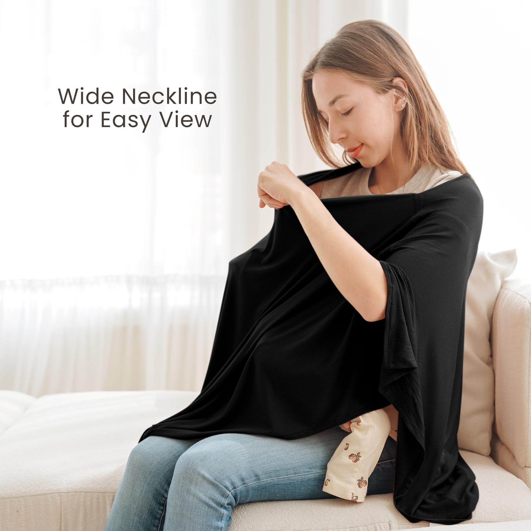 - Q: What are the dimensions of the nursing cover? A: The Konssy Knit Nursing Cover is designed for full coverage, although specific dimensions are not provided. It offers ample fabric to ensure privacy during breastfeeding.