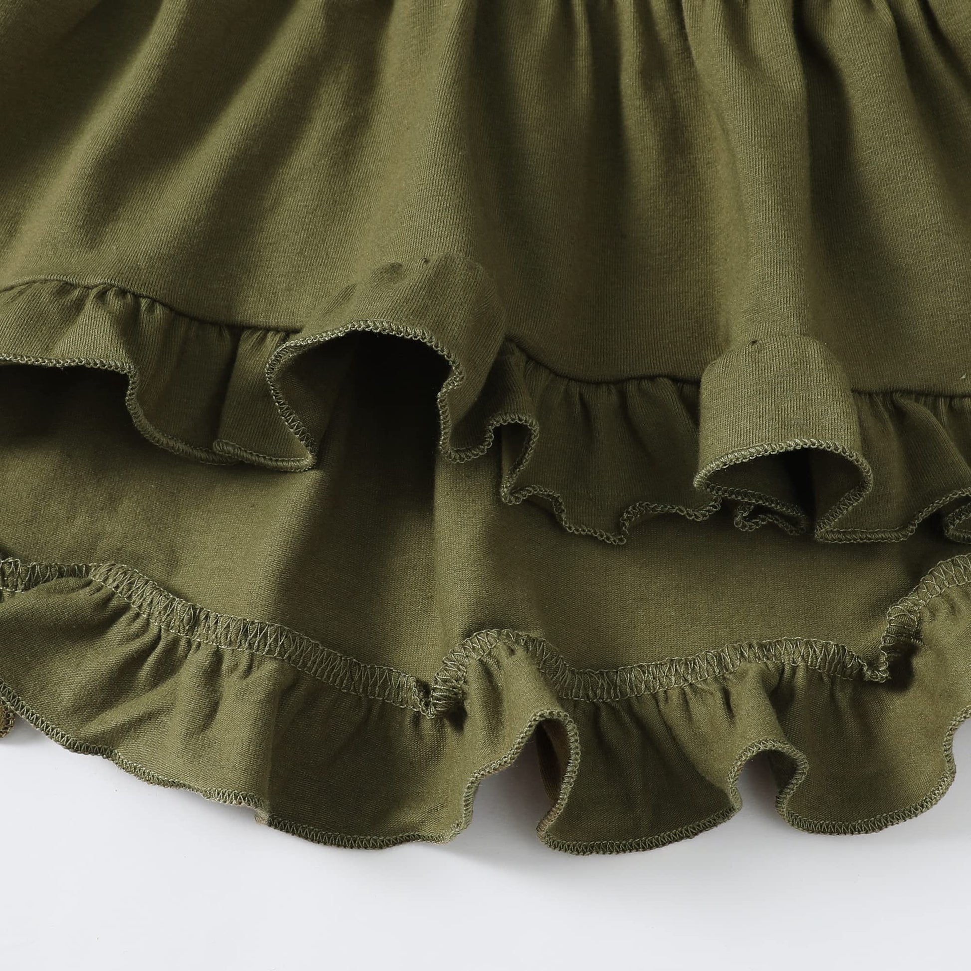 - Q: What materials are used in this outfit? A: The outfit is made from a cotton blend that is designed to be soft and comfortable for your baby girl.