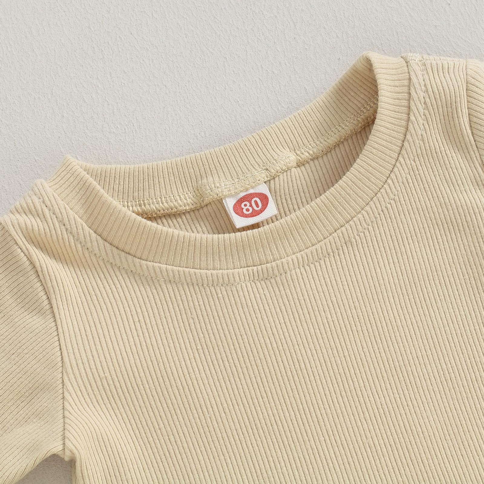 - Q: What design features does the Kupretty Toddler Summer Clothes Set have? A: The set features a solid plain color ribbed knitted short sleeve top with a small curl hem design and matching elastic waistband shorts.