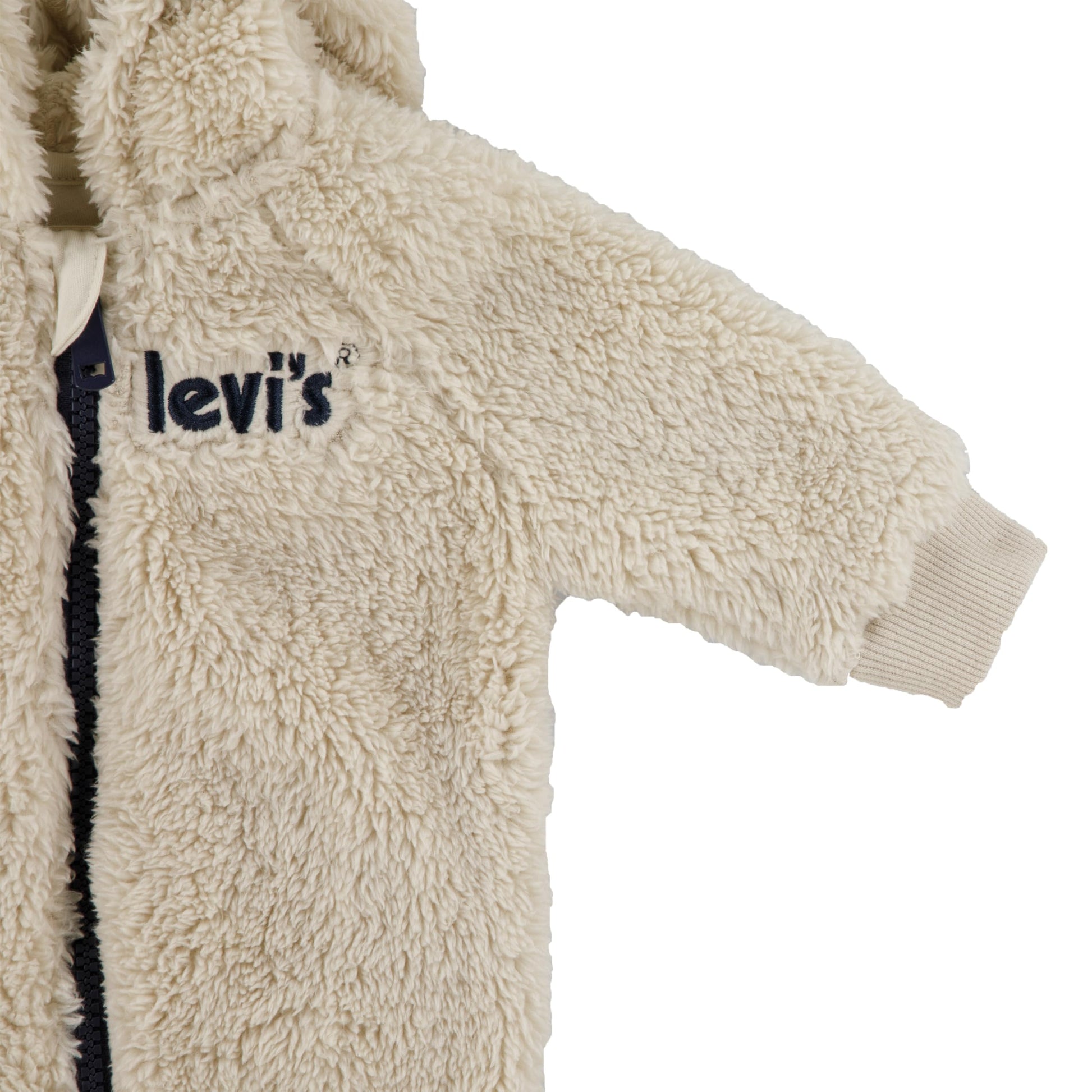 - Q: Does the coverall have any special features? A: In addition to the cozy material and hood, the coverall features the iconic Levi's logo, adding a stylish touch to your baby's outfit.