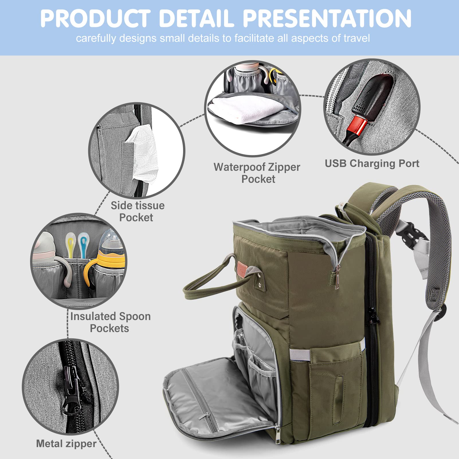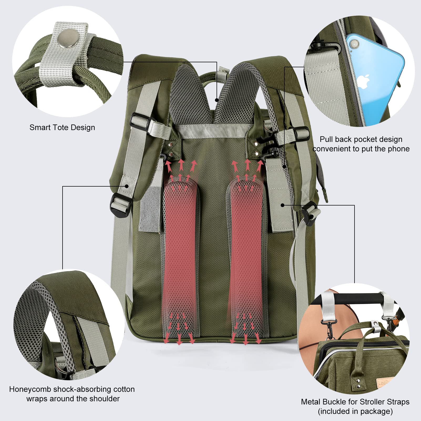 - Q: Can this diaper bag be used for both boys and girls? A: Absolutely! The Diaper Bag Backpack features a stylish army green color that is suitable for both boys and girls.