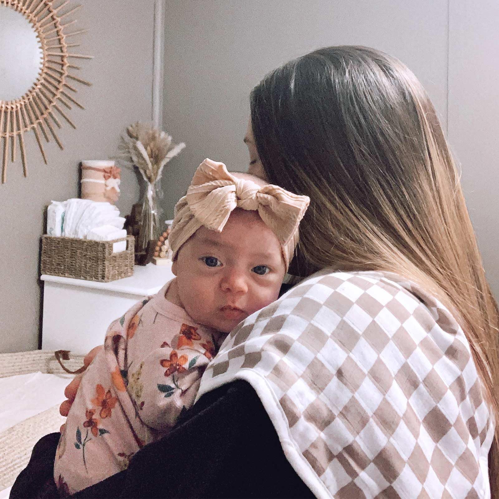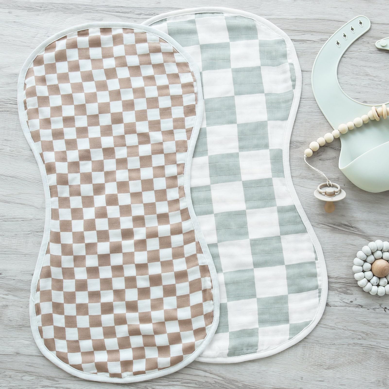 - Q: What colors and patterns are available for the burp cloths? A: The burp cloths feature popular checkered prints in modern colors suitable for both baby girls and boys.