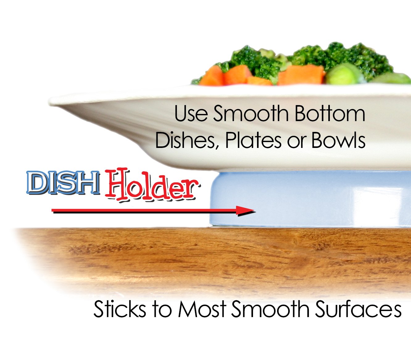 - Q: What is the Lil' Diner Baby Diner-Dish Holder used for? A: The Lil' Diner Baby Diner-Dish Holder is designed to secure smooth-bottom plates, bowls, and dishware to smooth table tops and structures, preventing children from knocking or throwing dishes on the floor.
