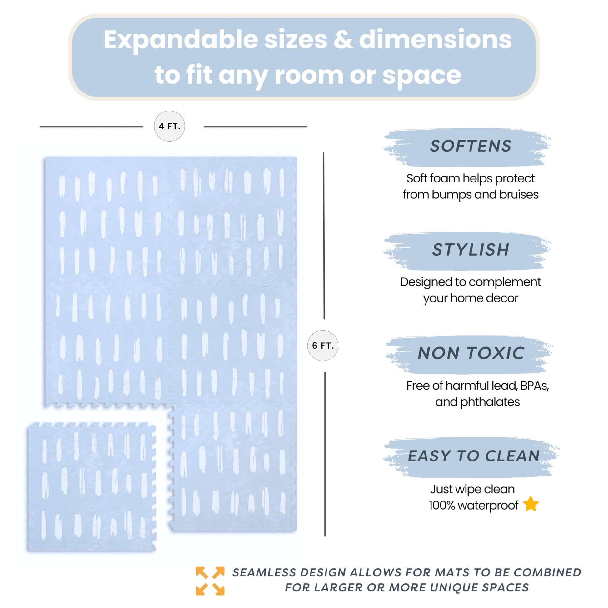 - Q: What are the dimensions of the Little Landings Baby Play Mat? A: The Little Landings Baby Play Mat measures 4 feet by 6 feet, providing ample space for your baby to play and explore.