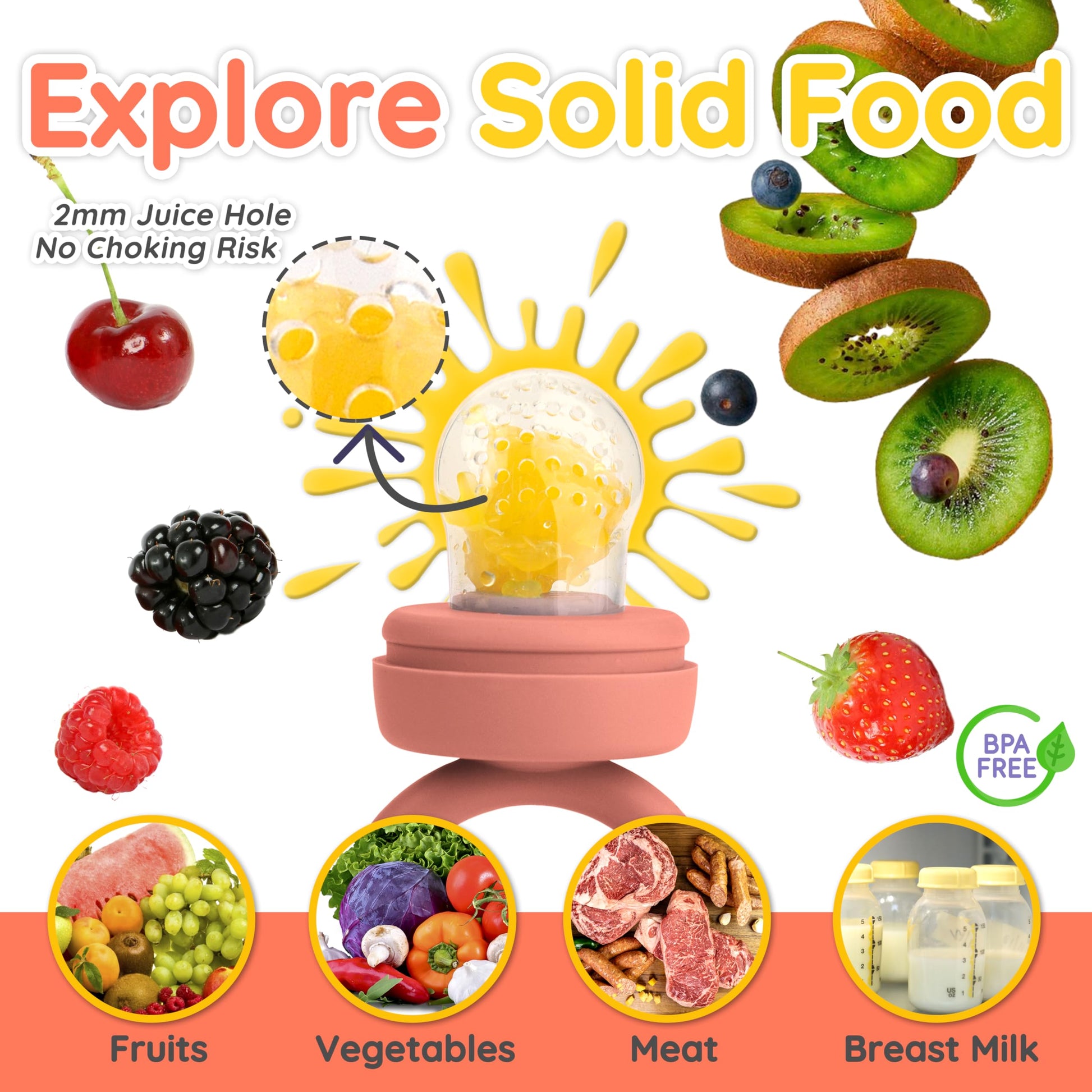 - Q: Can I use the fruit feeder for purees and smoothies? A: Yes, the fruit feeder can be filled with fruits, purees, or smoothies, allowing your baby to explore different tastes safely.