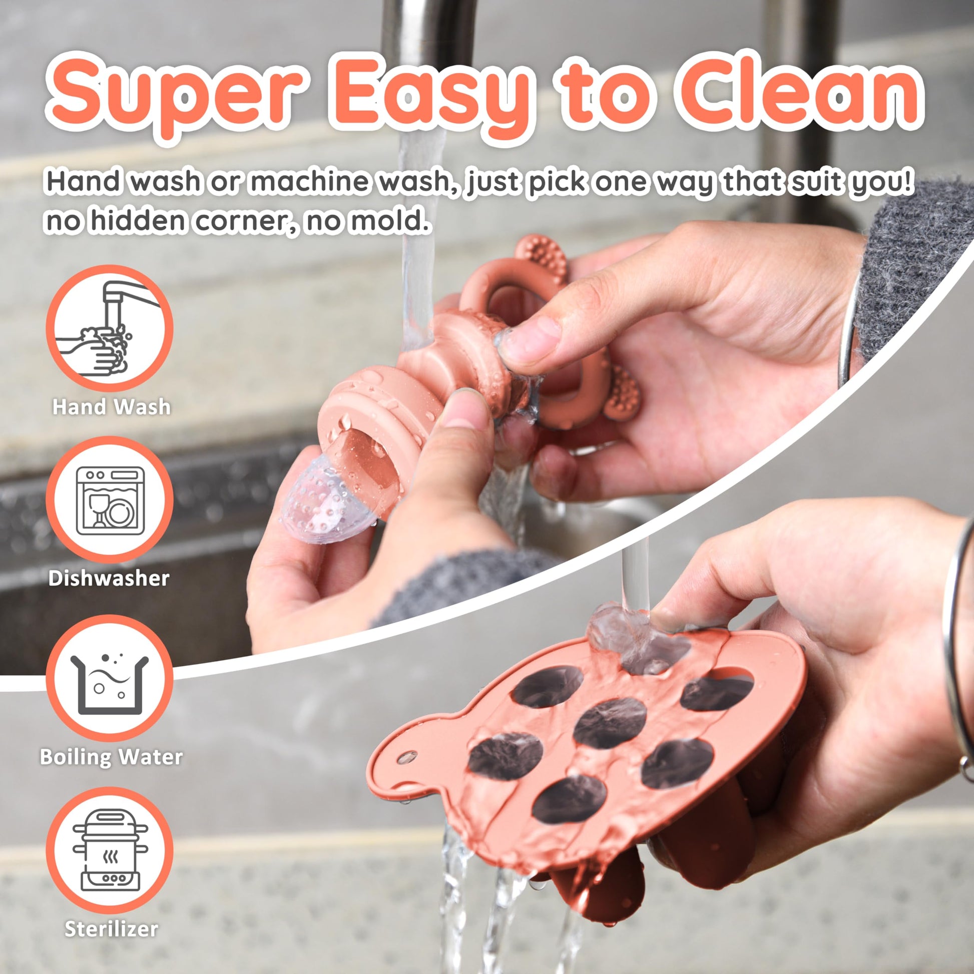 - Q: How do I clean the silicone food feeder? A: The silicone food feeder is easy to clean; simply wash it with warm soapy water or place it in the dishwasher for convenience.