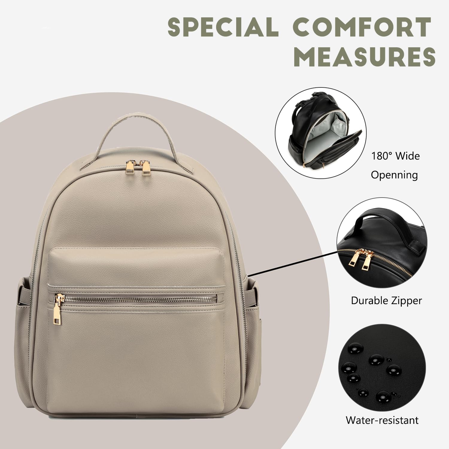 Loradi Small Diaper Backpack With Stroller Buckle, Insulated Pockets And Water-Proof Pocket (Beige)