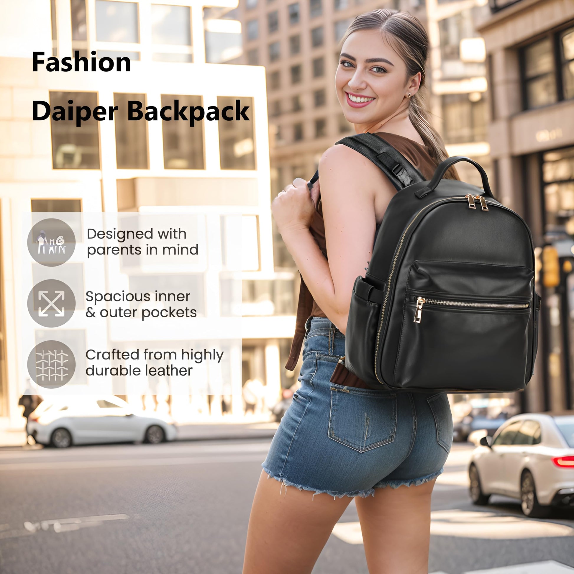 • Q: What materials is the backpack made from? A: The LORADI Compact Diaper Backpack is made from high-quality faux leather, ensuring durability and a stylish appearance.