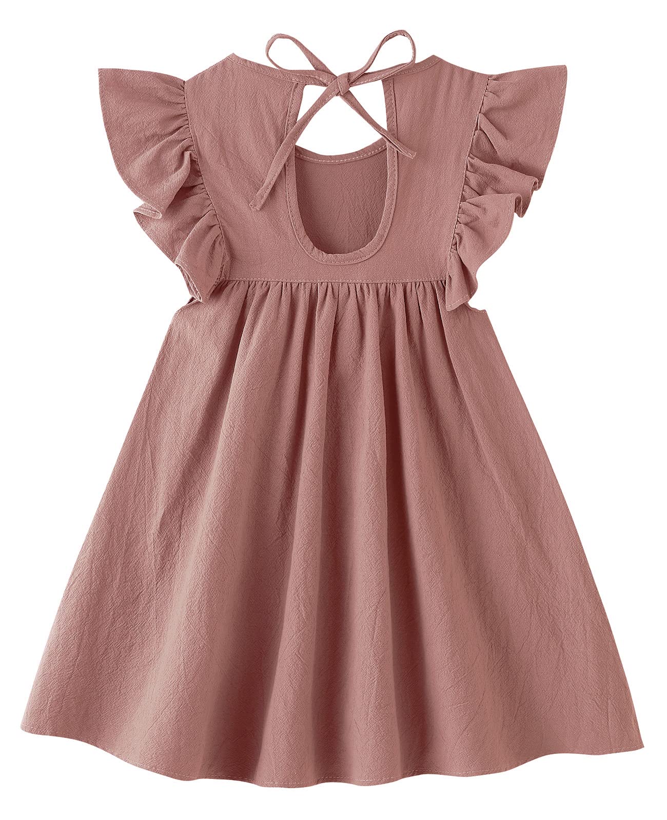 - Q: Does this dress have any special design features? A: Yes, it features a backless design with a tie-up and bowknot, along with ruffle sleeves that add a classic and adorable summer feel.