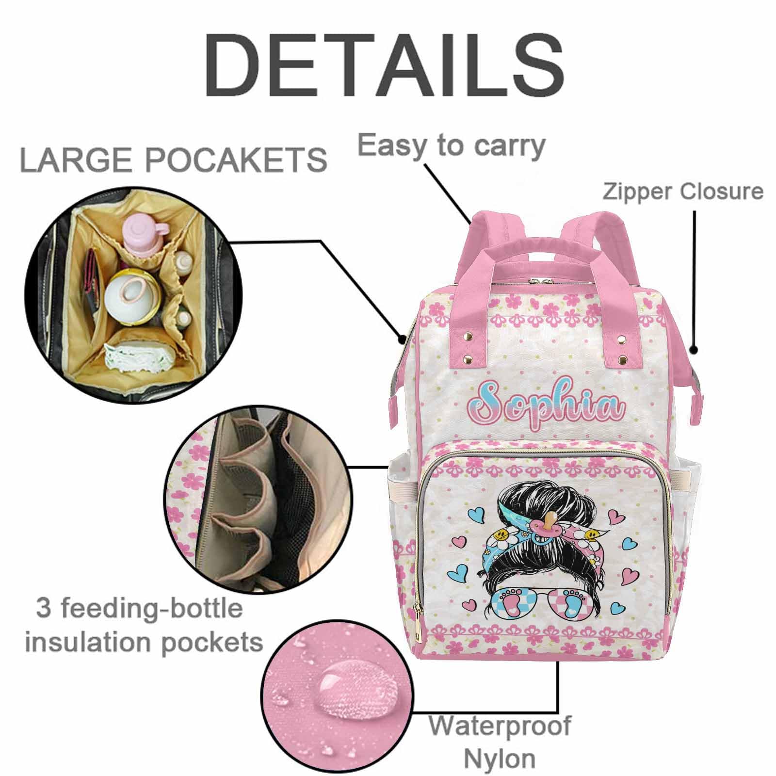 M Yescustom Custom Cute Diaper Bag Backpack For Girls Boys Large Capacity With Pockets Personalized Baby Diaper Bags For Mom Wat
