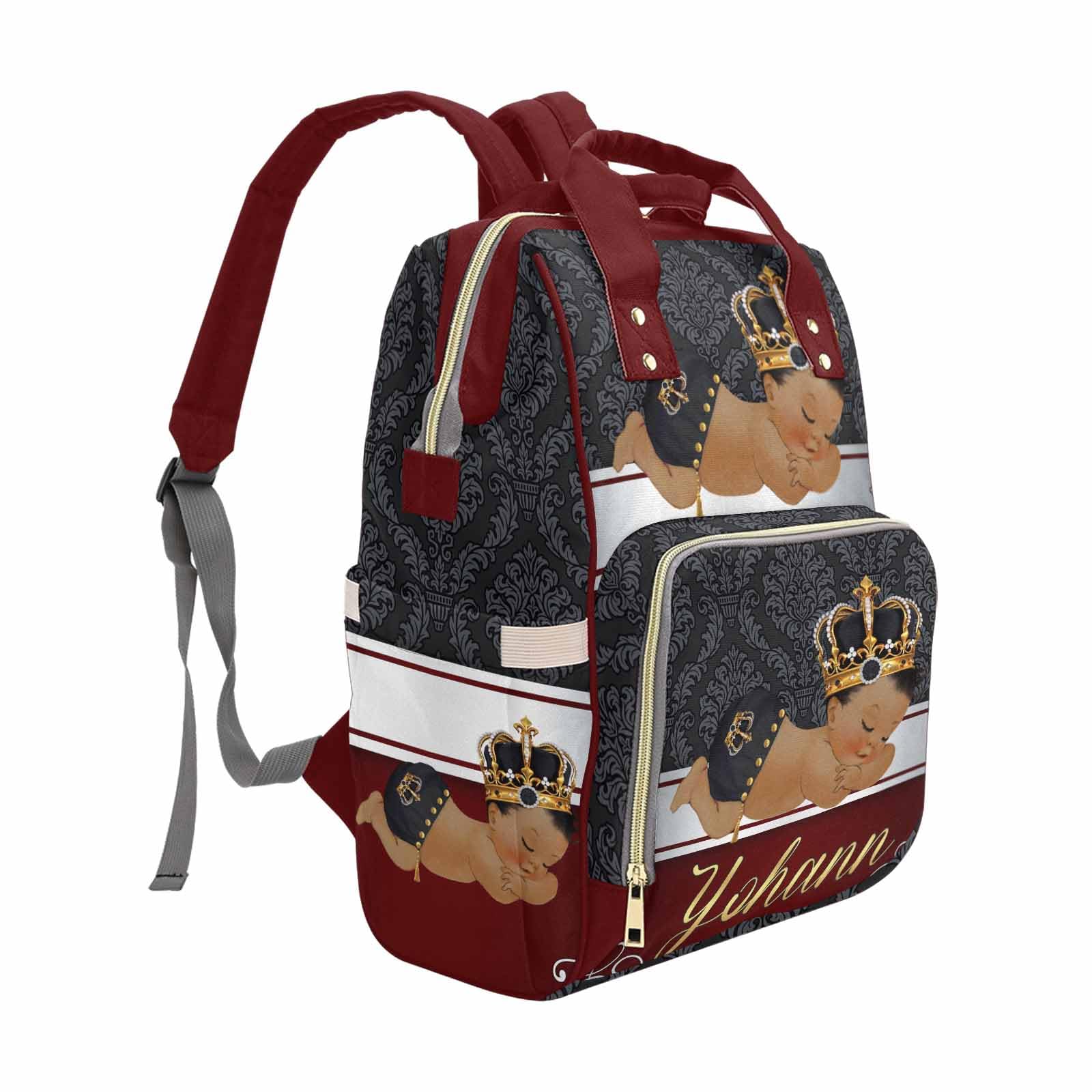 M Yescustom Personalized Baby Diaper Bag, Vintage Custom Red Crown Prince Diaper Bag With Name, Waterproof Diaper Bag Backpack M