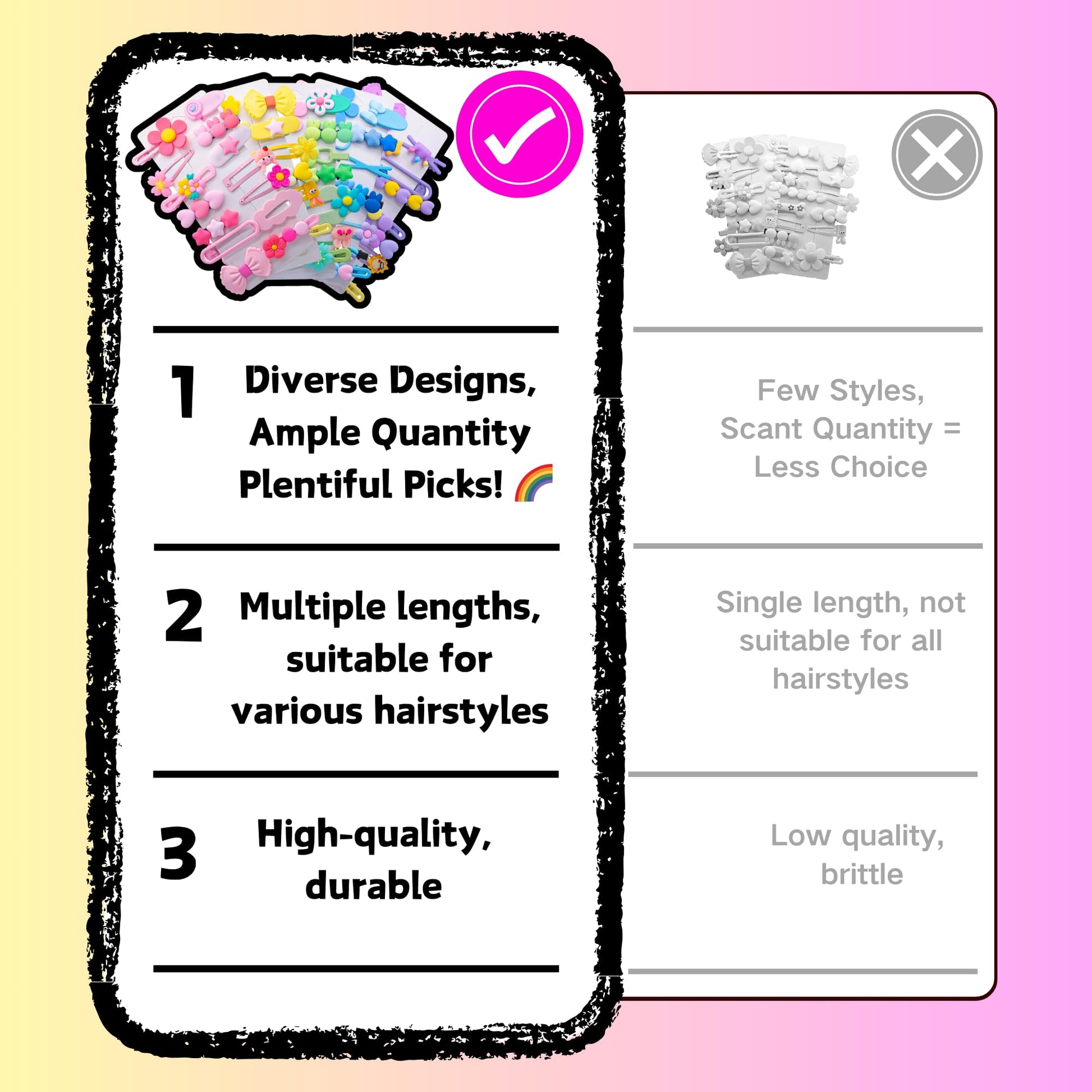 - Q: What types of designs are included in the set? A: The set includes a variety of adorable designs, such as flowers, stars, fruits, and hearts, providing fun options for every little girl.