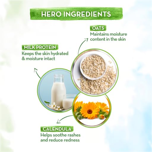 - Q: What are the main ingredients in Mamaearth Milky Soft Baby Body Wash? A: Mamaearth Milky Soft Baby Body Wash contains Oats, Milk, and Calendula, which are known for their moisturizing and nourishing properties, making it suitable for delicate baby skin.