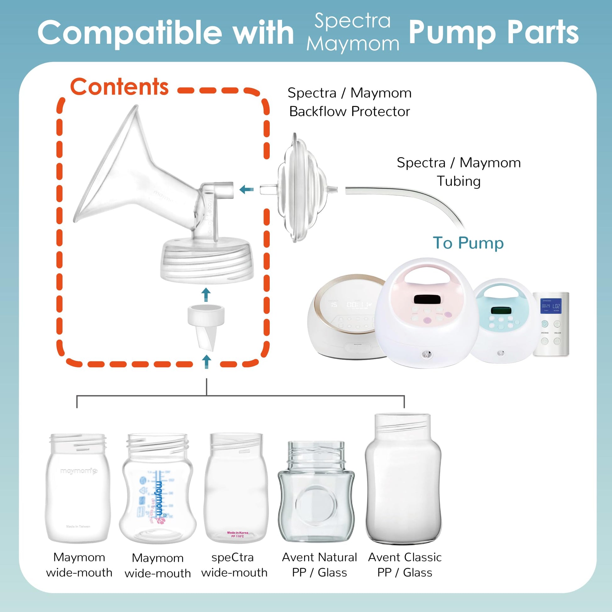 - Q: What breast pumps are compatible with the Maymom 21mm flange and duckbill valve? A: The Maymom 21mm flange and duckbill valve are compatible with Spectra S1, Spectra S2, and Spectra 9 Plus breast pumps.