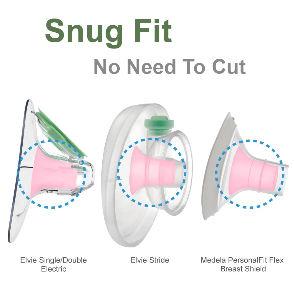 - Q: What is the Maymom 21mm Flange Insert designed for? A: The Maymom 21mm Flange Insert is designed to be compatible with Elvie Single and Double Electric Breast Pumps, allowing users to downsize from a 24mm flange to a 21mm, 19mm, 17mm, or 15mm size for a more comfortable fit.