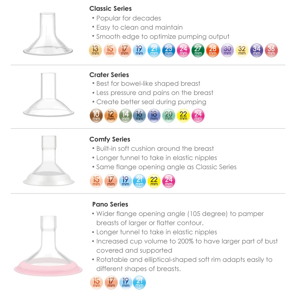 • Q: What sizes are available for the Maymom breastshields? A: Maymom offers a variety of breastshield sizes including 13 mm, 15 mm, 17 mm, 19 mm, 21 mm, 24 mm, 25 mm, 26 mm, 27 mm, 29 mm, 30 mm, and 32 mm, catering to different personal pumping needs.