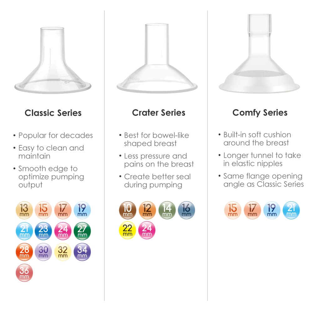 - Q: How many sizes of breast shields does Maymom offer? A: Maymom offers a variety of breast shield sizes, including 13 mm, 15 mm, 17 mm, 19 mm, 21 mm, 24 mm, 25 mm, 26 mm, 27 mm, 29 mm, 30 mm, and 32 mm for purchase.