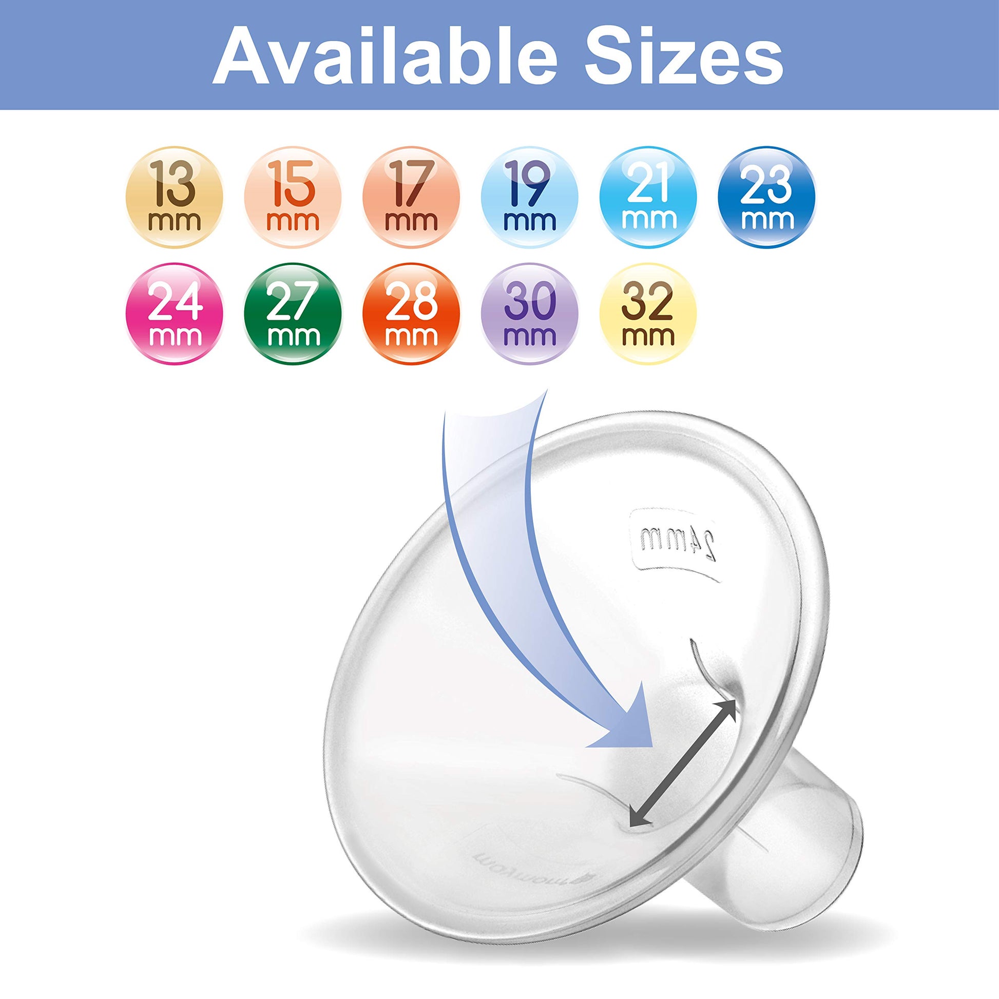 - Q: What sizes of breast shields are available in this set? A: This set includes a 21mm shield, but Maymom offers various shield sizes ranging from 10mm to 36mm to accommodate different nipple sizes.